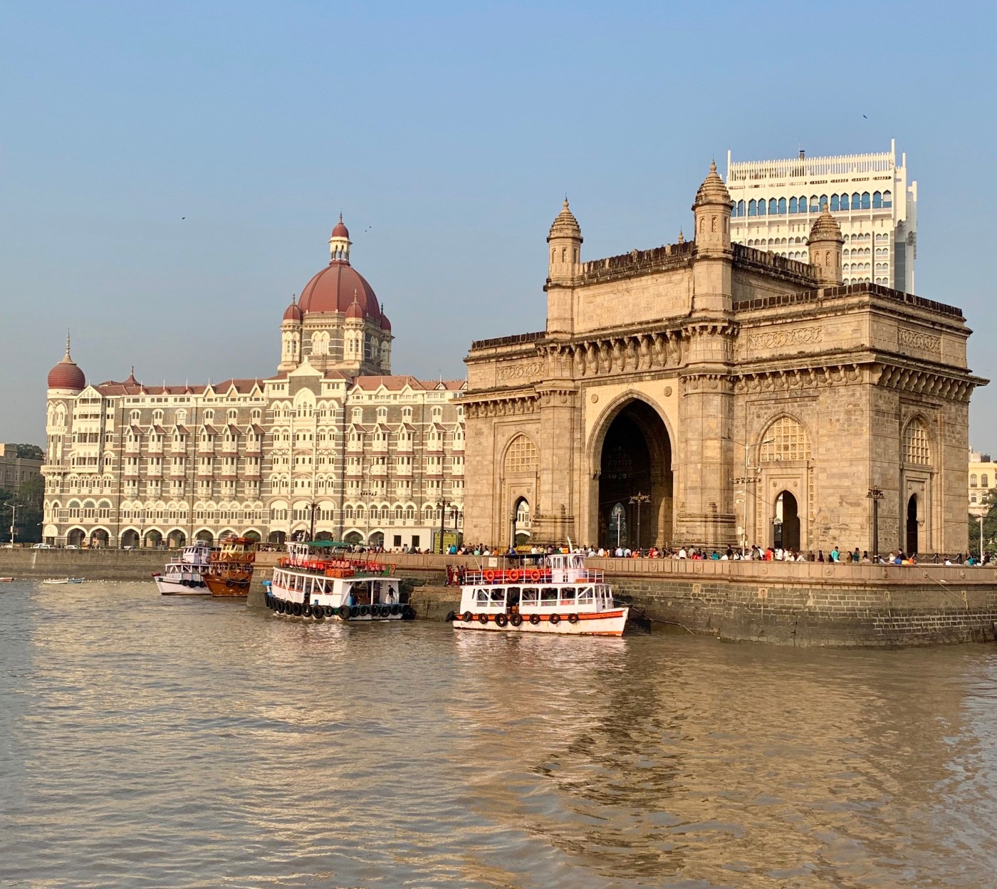 We did not have a guide for our first day in Mumbai, which we started exploring after a few hours of sleep. Hotel did not have anyone readily available on a Sunday and the guide they were able to reach asked for 40 USD for a half a day tour, which we politely declined. We were staying at a very good location and I was sure we can manage on our own. Sean was slightly hesitant- we have heard all these stories about how foreigners get harrassed on the street, how everyone will be in your face etc. None of that was true at all. We certainly stood out and quite a few times throughout the trip were asked to take photos with the kids or families, but nobody was ever rude or annoying about it. So we made our itinerary for the day and ventured out on our own. Today we will see Gateway of IndiaElephanta CavesThe Taj Mahal Palace hotelLeopold’s Cafe, Rajabai Clock Tower of Mumbai University, Chhatrapati Shivaji Maharaj Terminus railway station and Fashion Street. That seems like a full day, but it was very easily manageable.