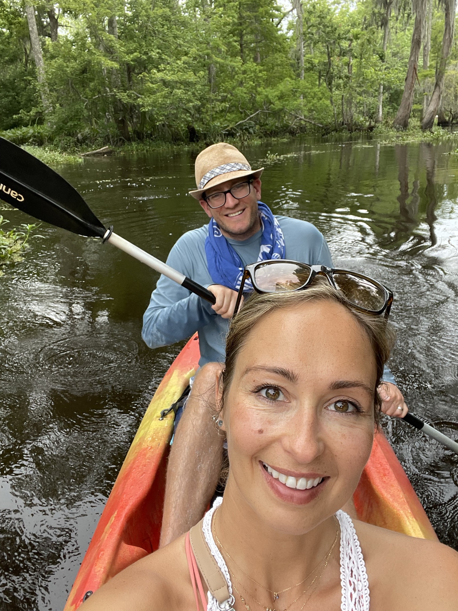 We also did not want to sit on a boat with a bunch of people (COVID- 19 is still a real thing), so paddling around in a kayak felt like a good socially distanced option. It ended up being around 16 people group, two per kayak plus the guide. Some were very inexperienced, but nobody ended up swimming and all had a great time.