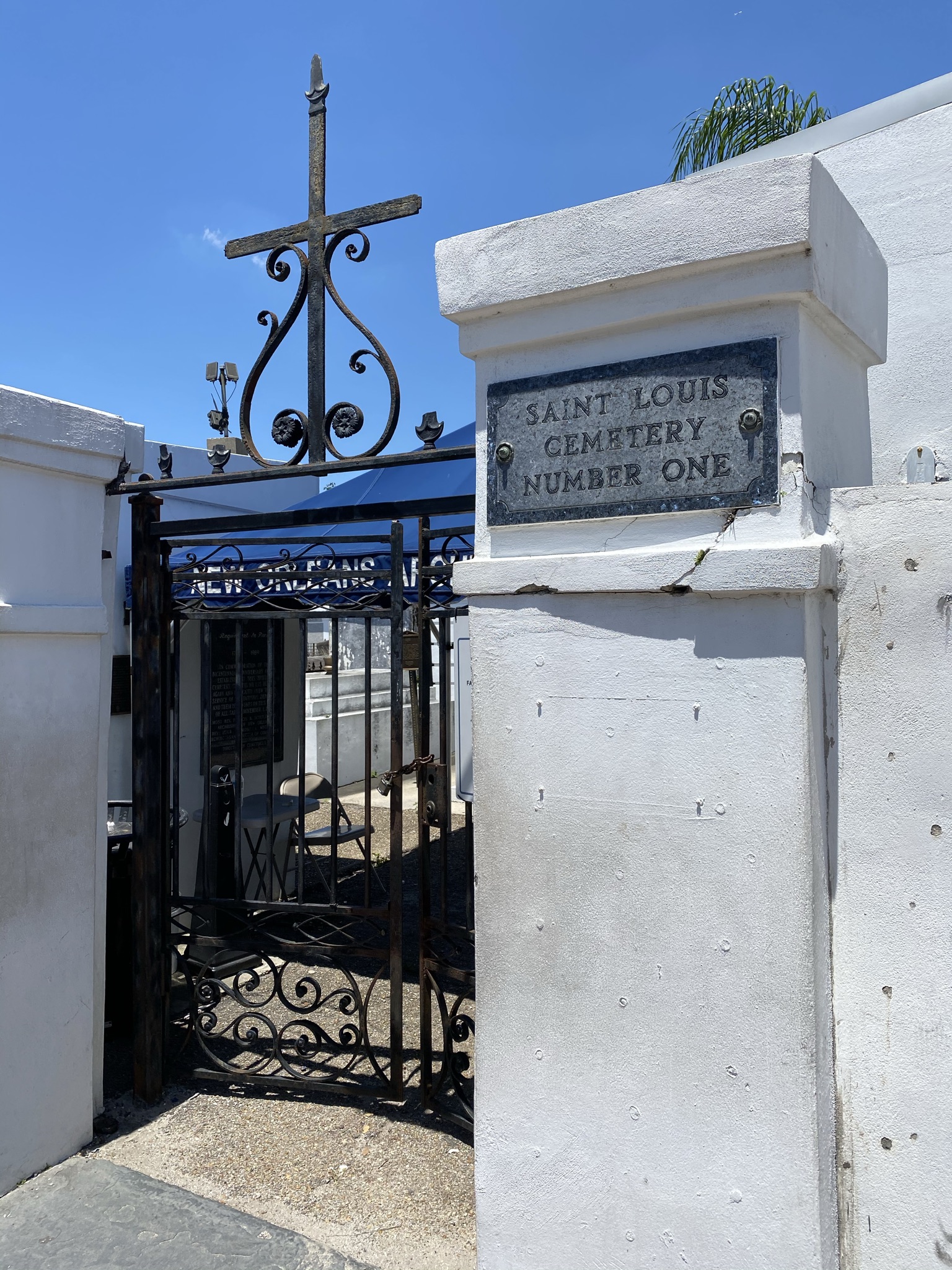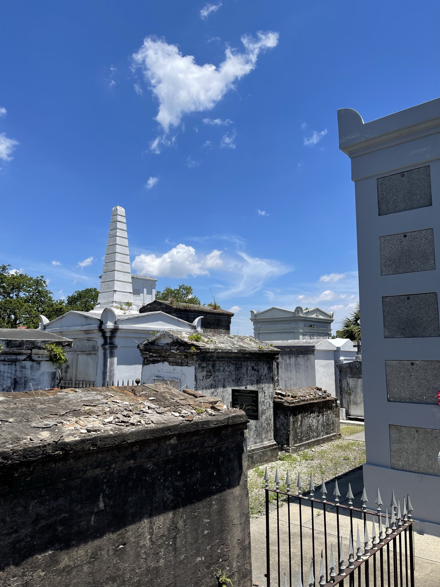 Of course not all of the French Quarter is a party central. St. Louis Cemetery No. 1 and nearby streets are calm and peaceful. The famous cemetery is currently closed for renovations, but we were able to take a peek at it from above the fence. Even when it’s open, this cemetery is only accessible with a guided tour. Amongst others, Voodoo queen Marie Laveau is buried here and Nicolas Cage has his future tomb (the white pyramid can be seen from above the fence).