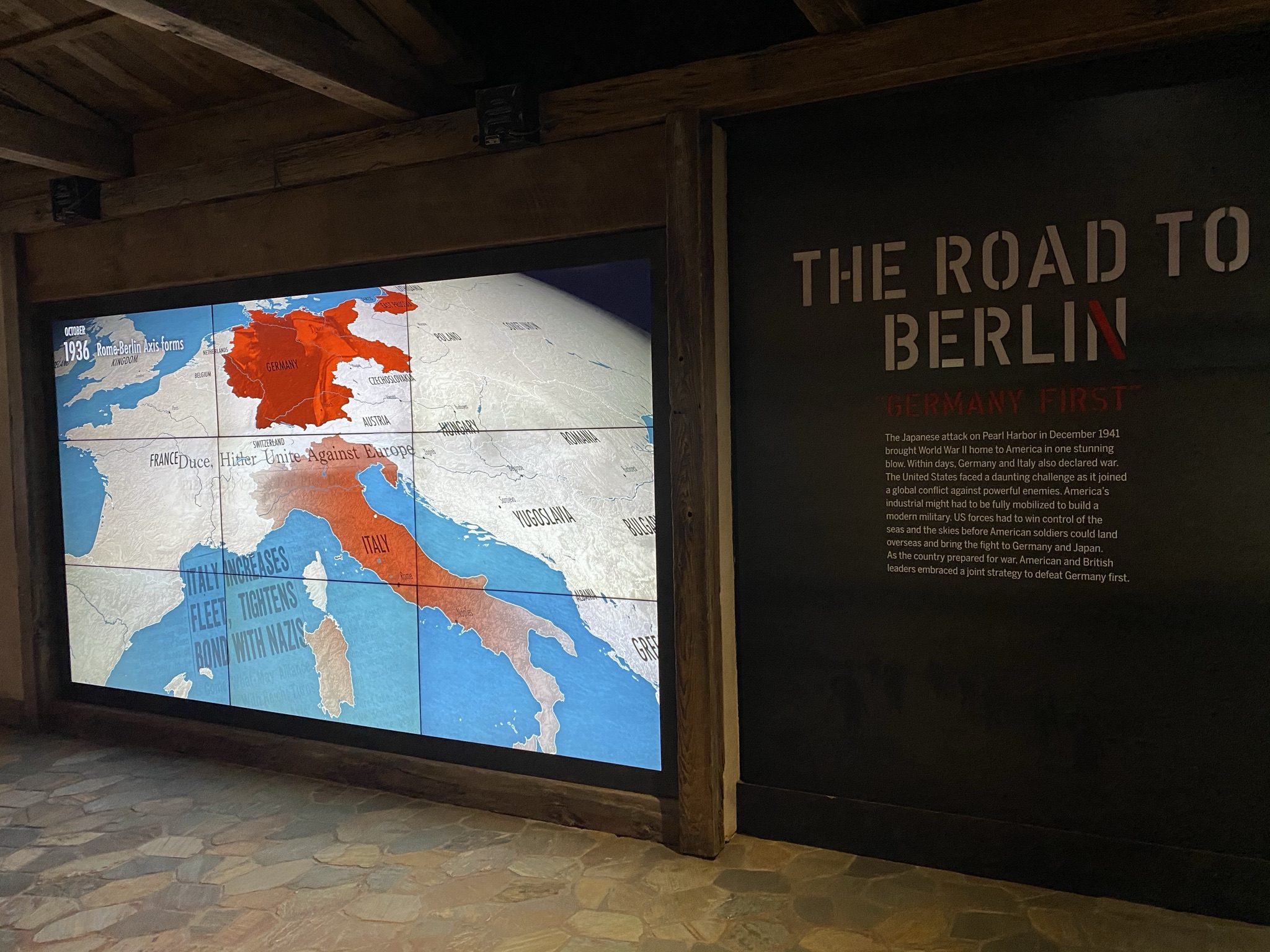 In order to see it all without a rush would probably take around four hours. We had only two, so chose a few exhibits (Road to Berlin, Road to Tokyo, The D-Day Invasion to Normandy) and a 4D experience “Beyond all Boundaries”.