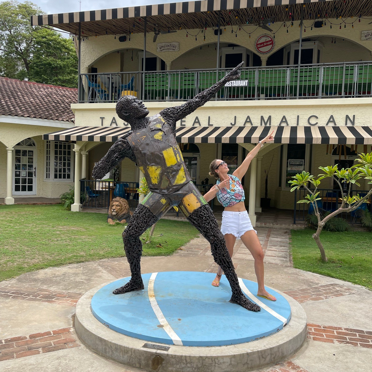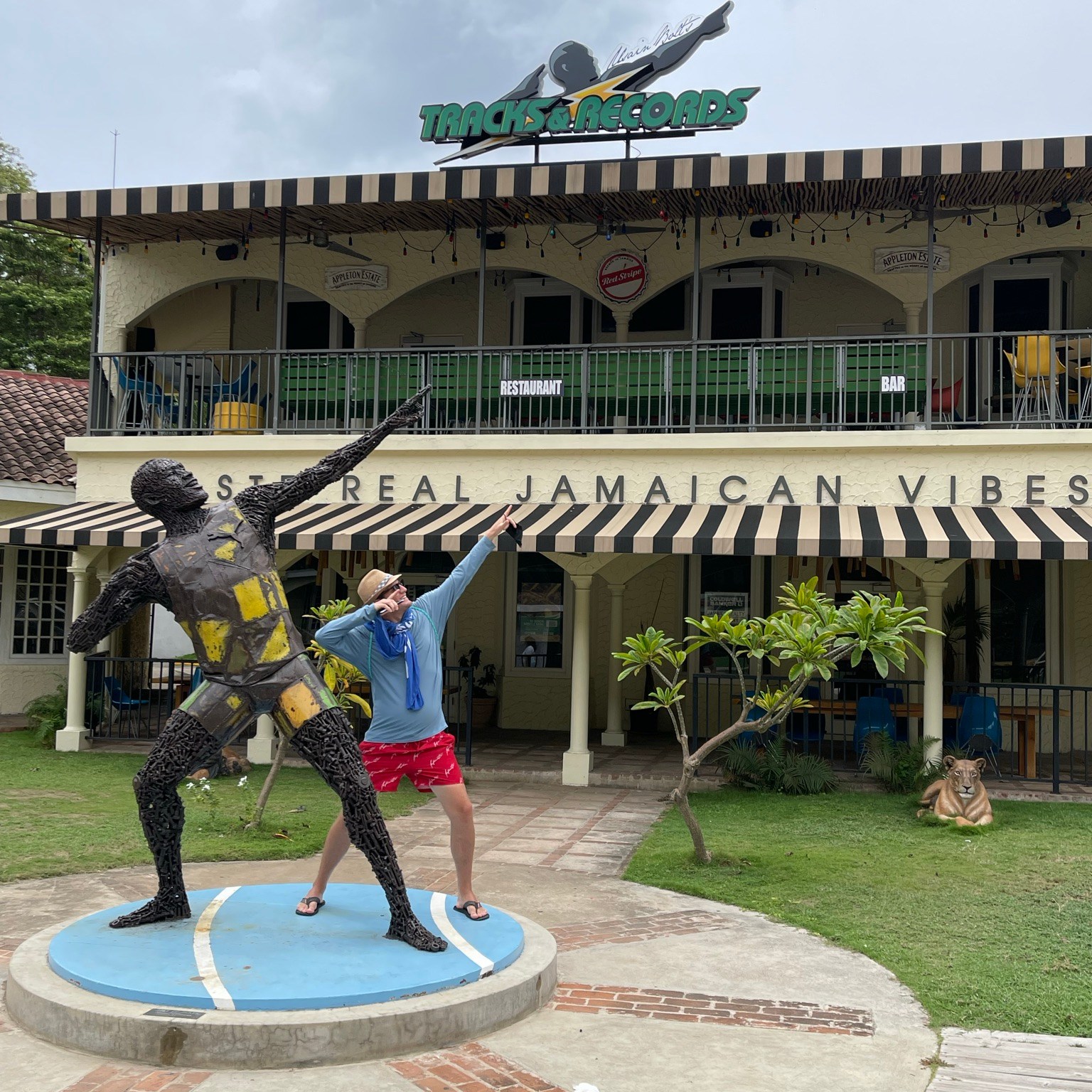 After the beach Sean wanted to see Usain Bolt’s statue- the fastest man alive still lives in Jamaica and has a restaurant in town- Usain Bolt’s Tracks and Records. Restaurant was closed due to curfew, but we got our pics near the statue at least.
