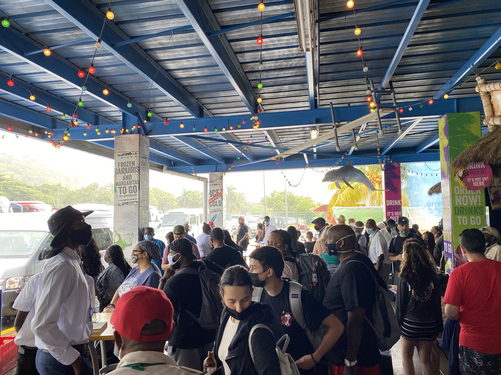 Our flight landed in Montego Bay (there was a slight delay from the connecting Philly due to weather over the Atlantic) and we entered into the hot and humid island just as torrential downpour started. The airport might be small, but it was VERY busy.