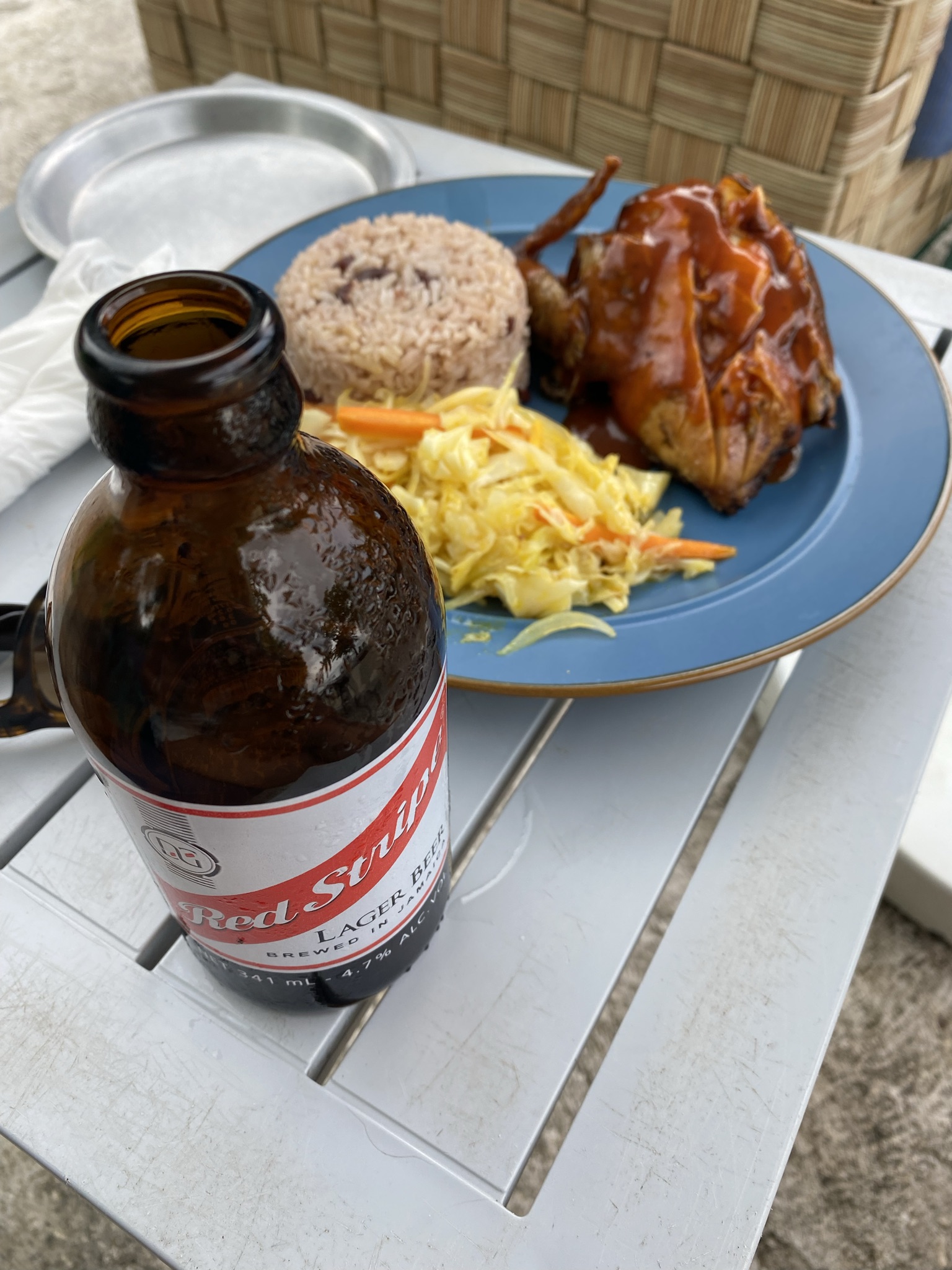 We were hungry, so stopped at the Beach Bunny Cafe– colorful setting, good playlist, great jerky chicken and a cold beer hit the spot.
