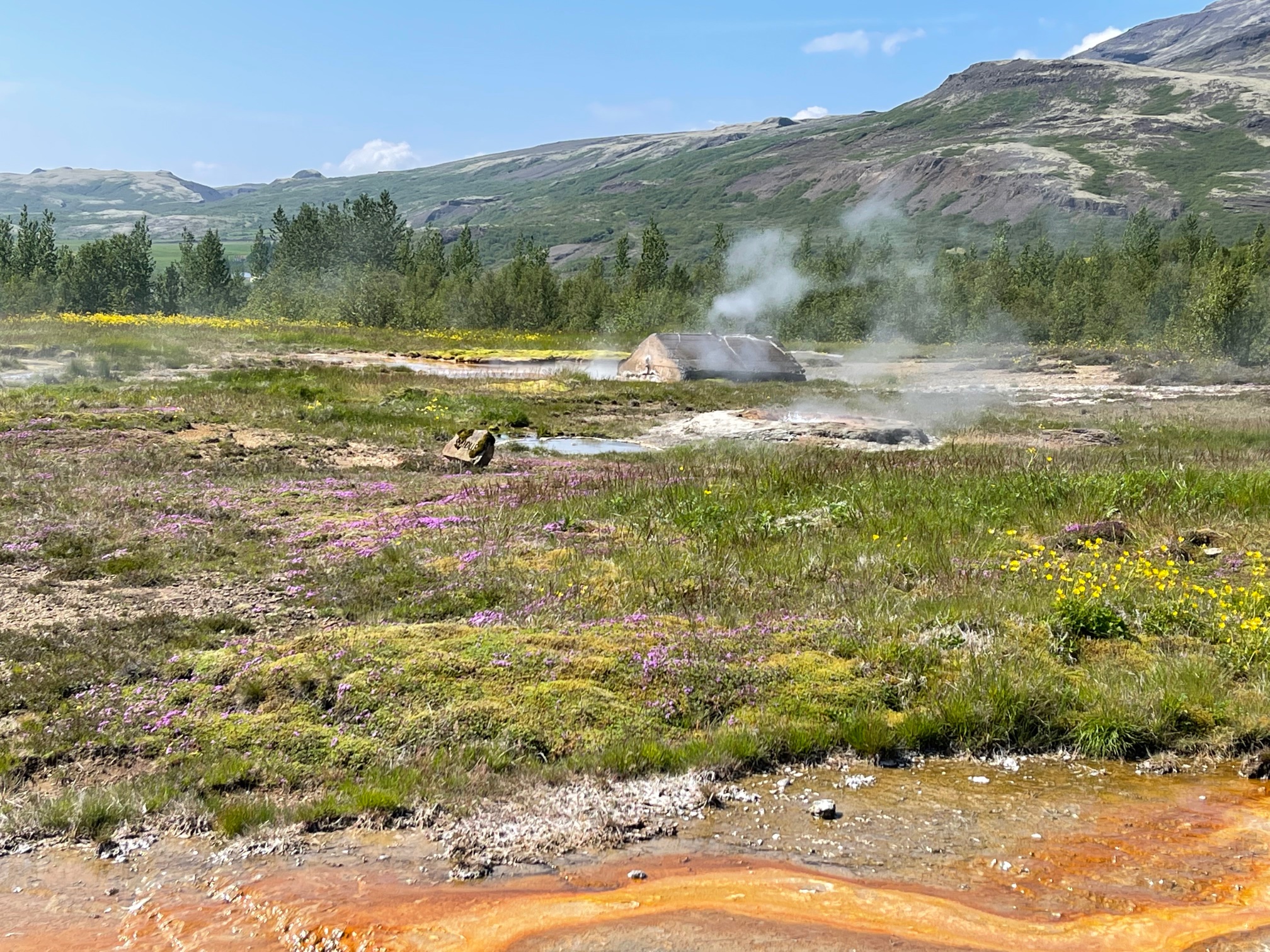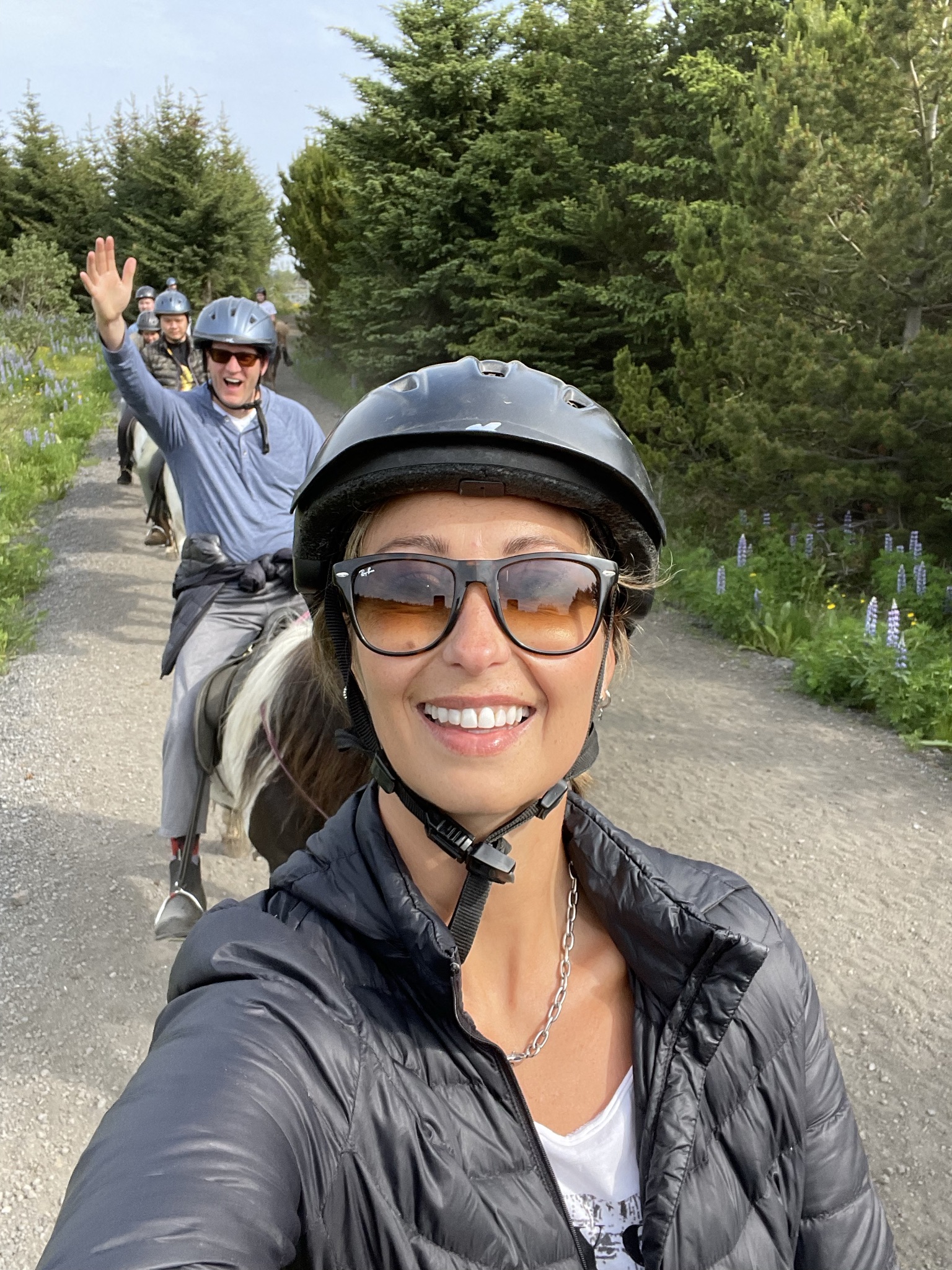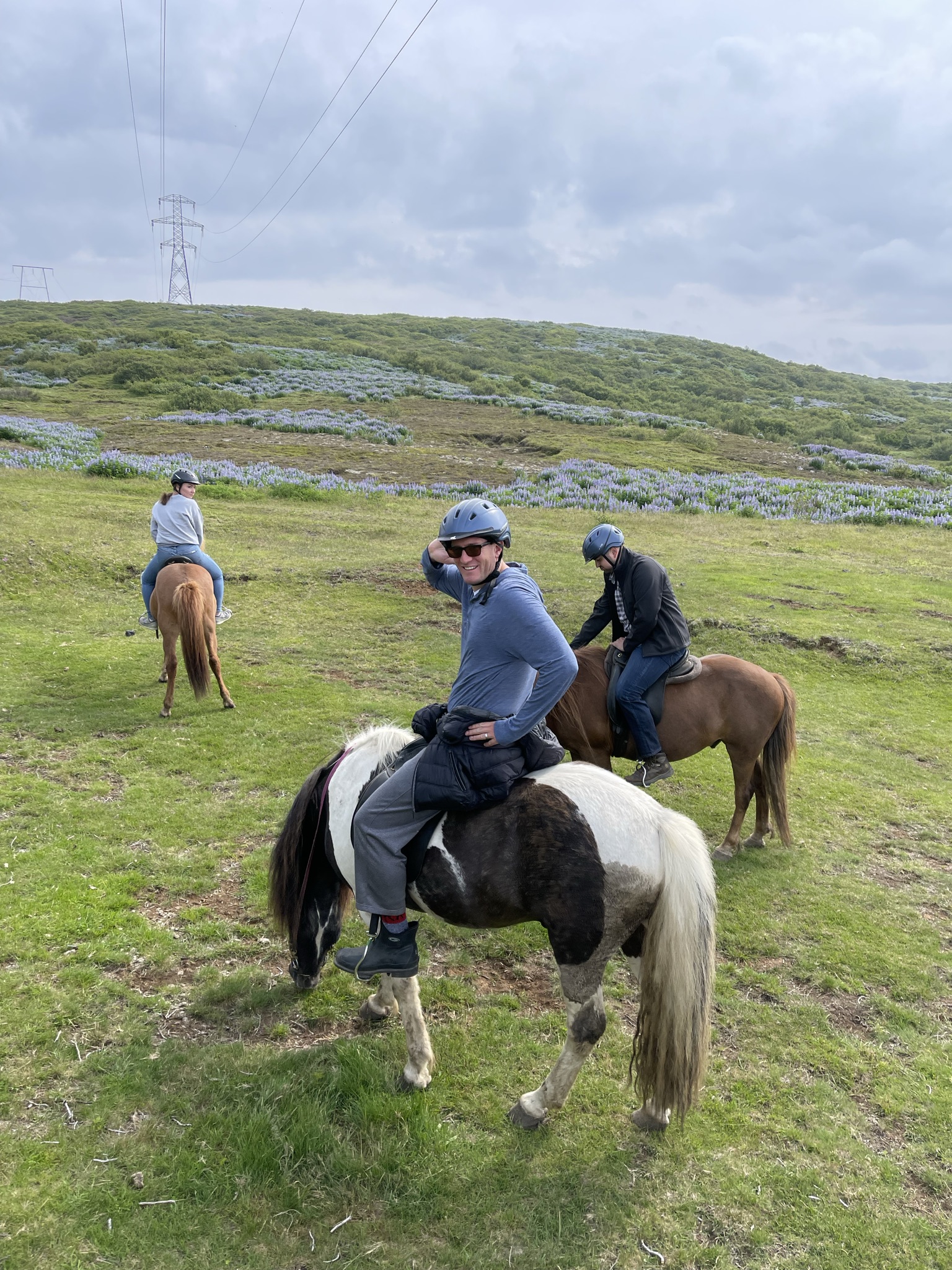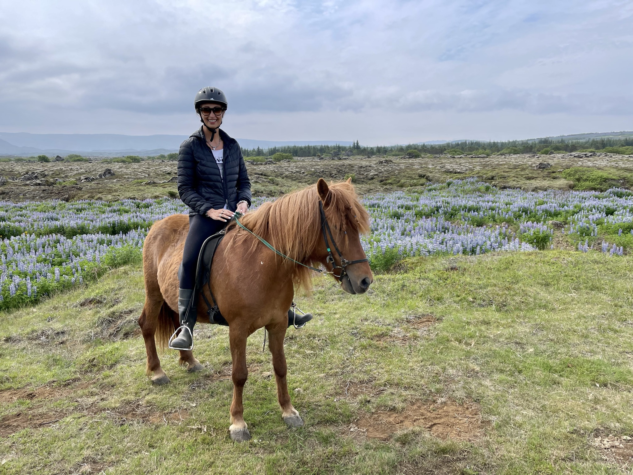 Sean’s first horseback riding experience was on the Icelandic horse during our previous visit and he wanted to repeat it again. My memories of that time were cold and rain, freezing hands and feet. What a pleasant change this was! Warm sunny day, flowers all around us, no wind or rain- it could not have been any better. Well, unless you count the fact that we were riding on four hours of sleep 🙂 .