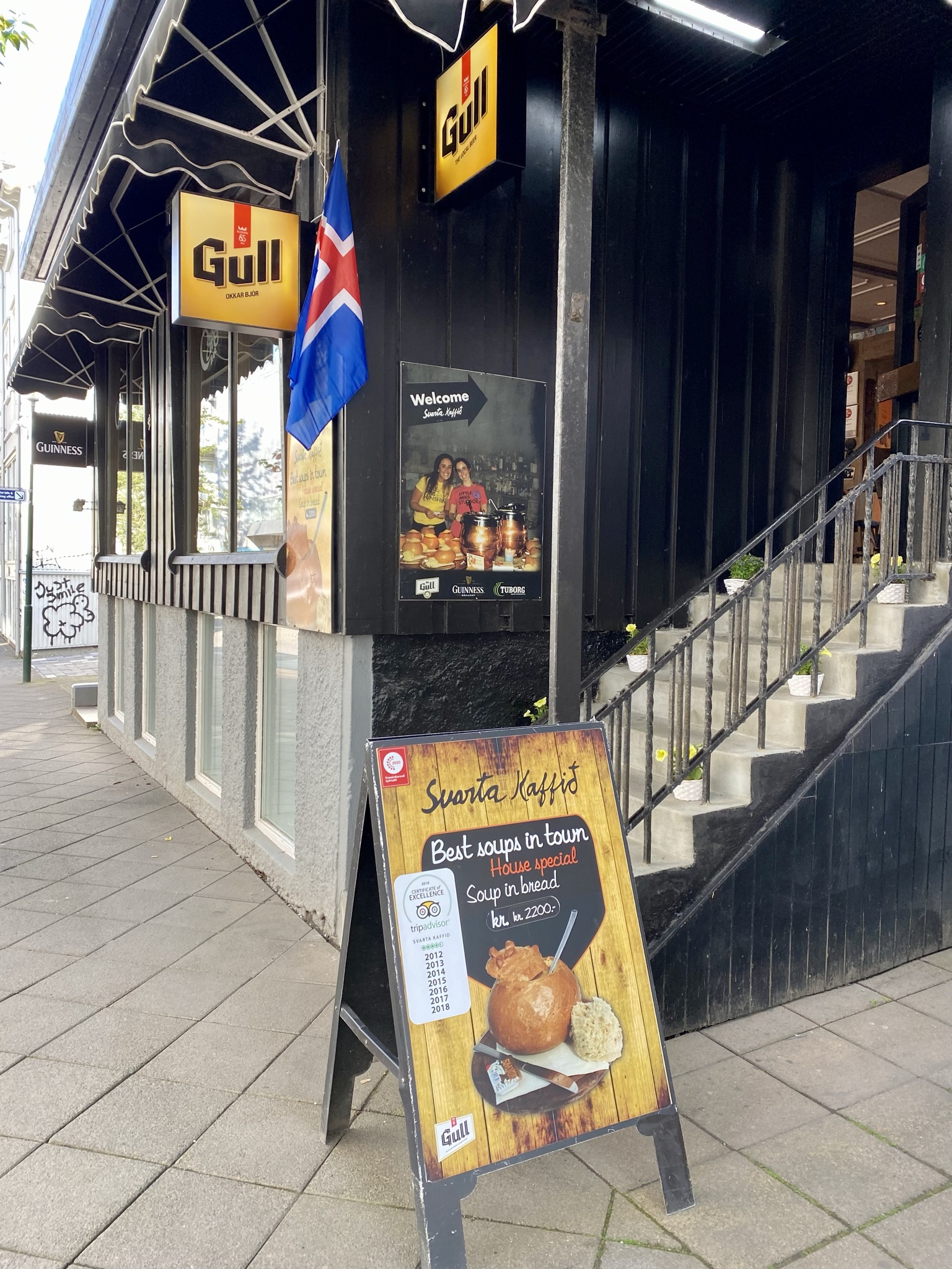 Svarta Kaffid was recommended to me by a friend and was perfect for a late lunch/pre-dinner snack. Their soups in the bread bowl were so good that we ate part of the bowls 🙂 . Great with a local beer too!