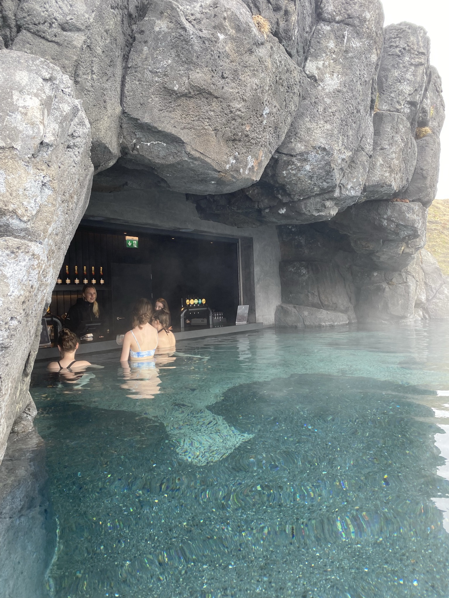 There are other features as well, such as a seven step experience- cold pool, sauna, cold mist, salt scrub, steam room, shower and of course the beautiful lagoon pool itself, surrounded by rock formations and overlooking the ocean. The Experience cost a bit more than just access to the main pool, but if you’re already there, I think it’s worth it. It reminded us of Nordic spas in Quebec, where you switch from hot to cold, saunas and cold baths.