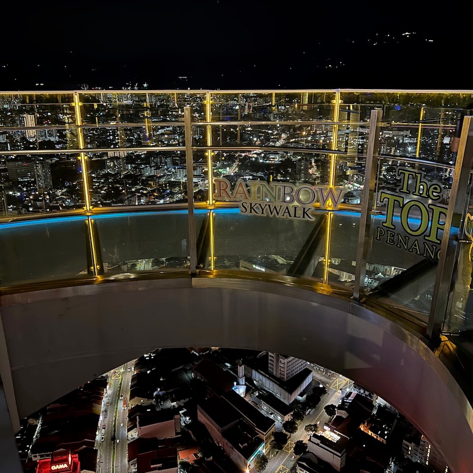 Located at Komtar– the tallest skyscraper in Penang, The Top is a rooftop viewing platform with the Rainbow Skywalk attached to it. We went in the evening and it was a bit scary at first to step on the curved glass walk, but once you get over the fear of going through it, it’s kind of a cool attraction.