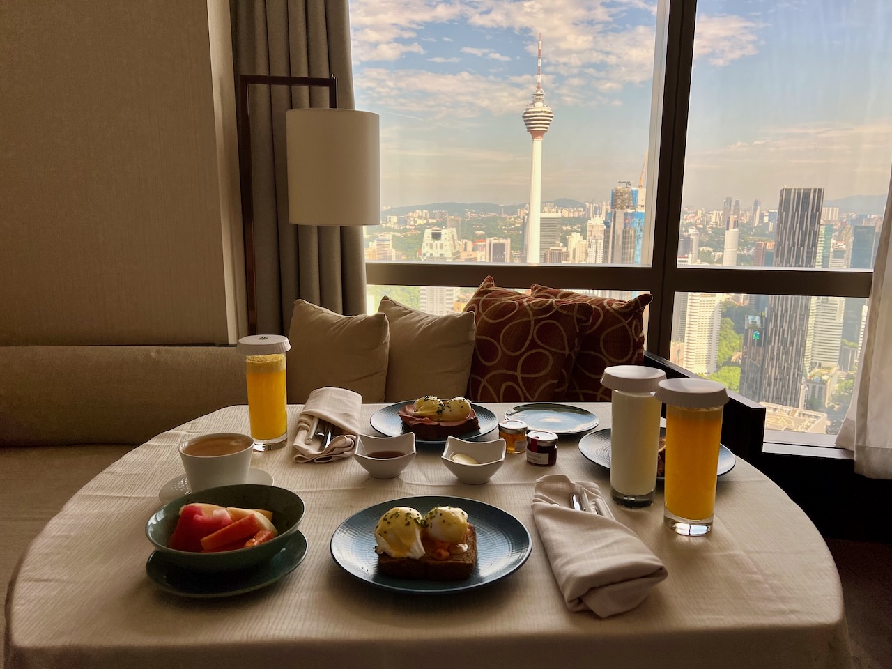 We got a direct view of KL Tower and a side view of the Petronas Towers, and a view of the second tallest building in the world, Merdeka 118, which was a lovely surprise. The service was impeccable and their caffe downstairs had excellent food and pastries. The pool was not very warm, though refreshing on a hot day.