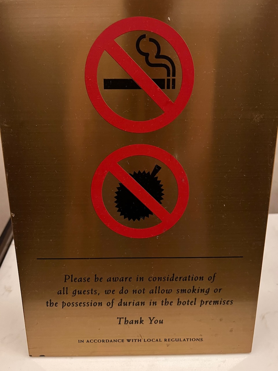It’s eaten with gloves, so that the distinctive smell does not linger on your hands afterwards. In fact, there are signs all over the indoor places (including our hotel) that this fruit is not allowed 🙂 .