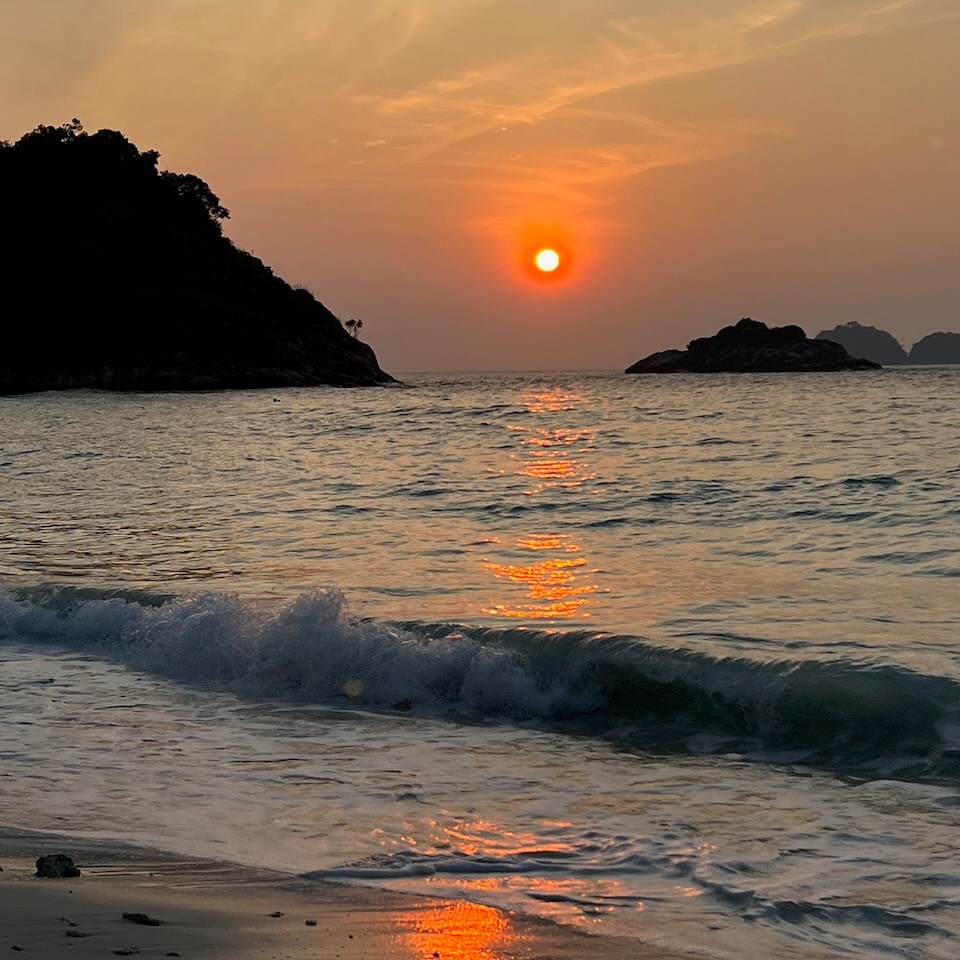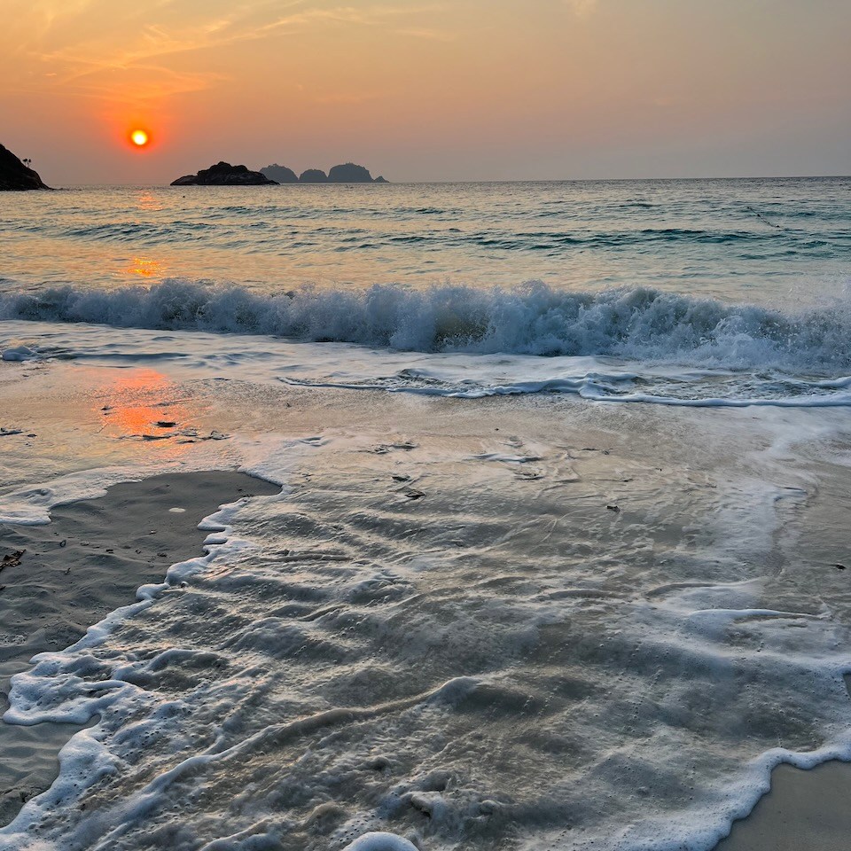 The sunrises were spectacular and the fresh coconuts were sweet and refreshing (as well as the cold beer). One evening we went for a dinner at the Redang Moon- Vitamin Sea Kitchen– a short walk down the beach on a hill. The view and the food was amazing (we even got a lightning show in the distance). They only take cash and do two seatings per night. It’s pricey, but we were bored with the buffet and it was well worth it. Fresh fish, grilled prawns, decadent dessert- an absolute must try place.