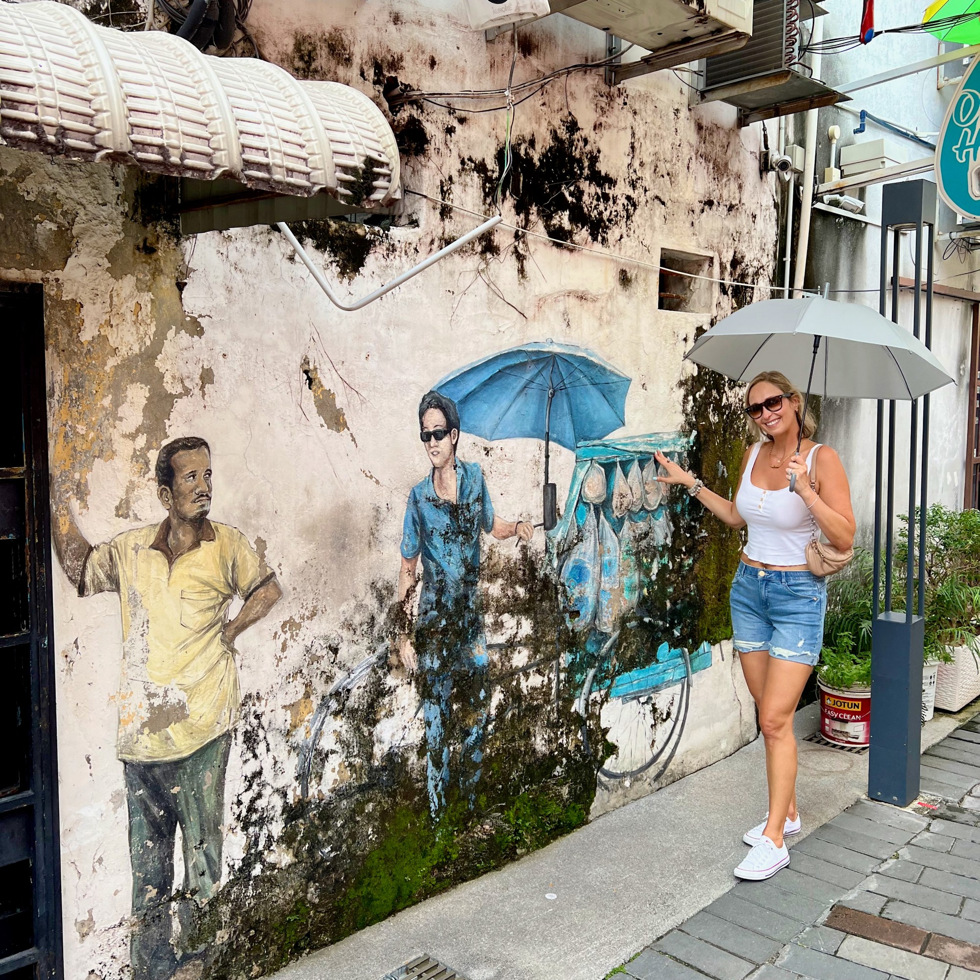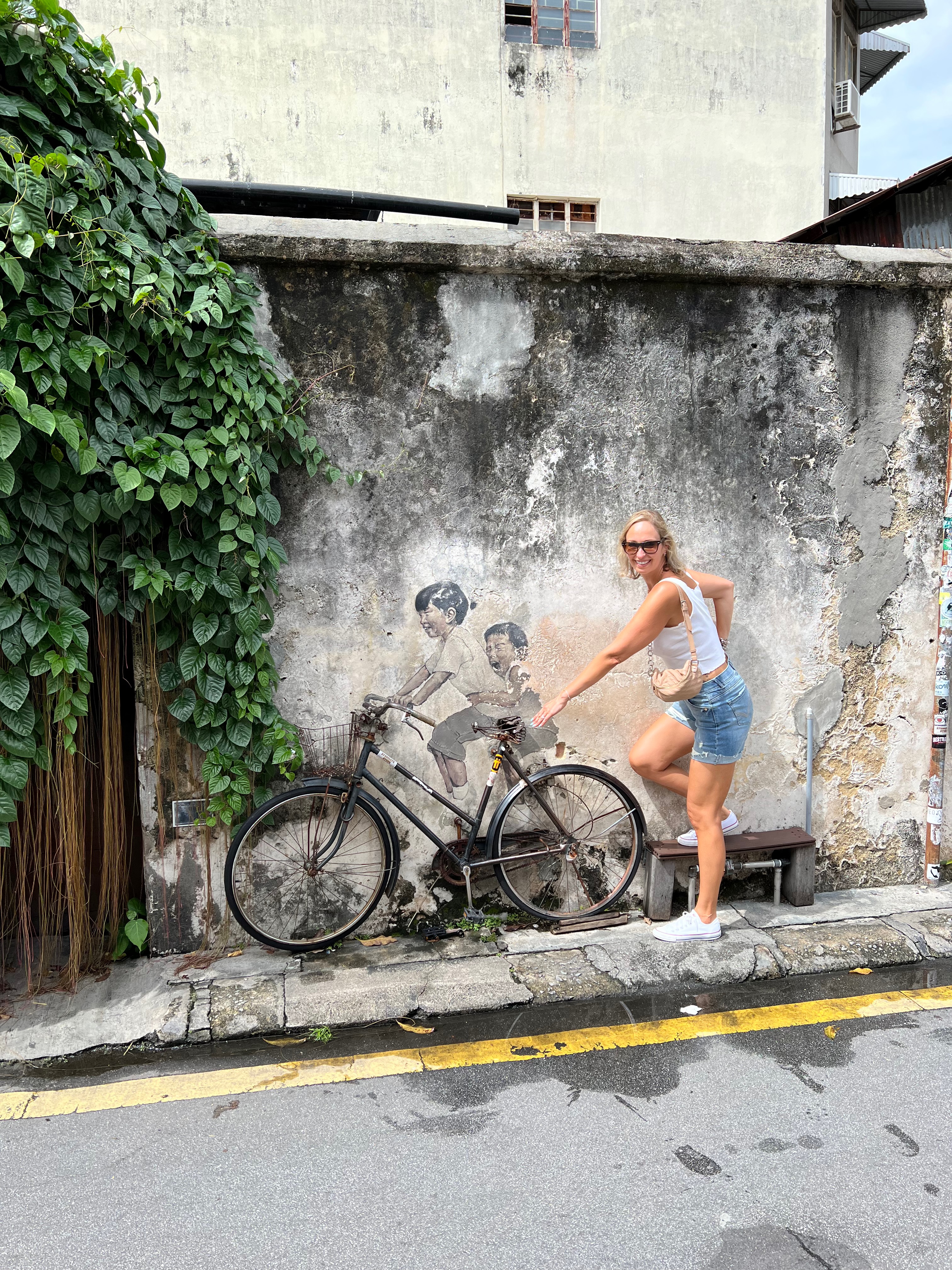 It sounds strange to go see the street art in a UNESCO protected city, but the murals in George Town are one of the main tourist attractions and for me it was even more special. I learned that some of the most famous installations were done by the Lithuanian artist Ernest Zacharevic! Being Lithuanian, this is a proud moment, so we walked around dripping in sweat and looking for the famous murals. And found most of them!