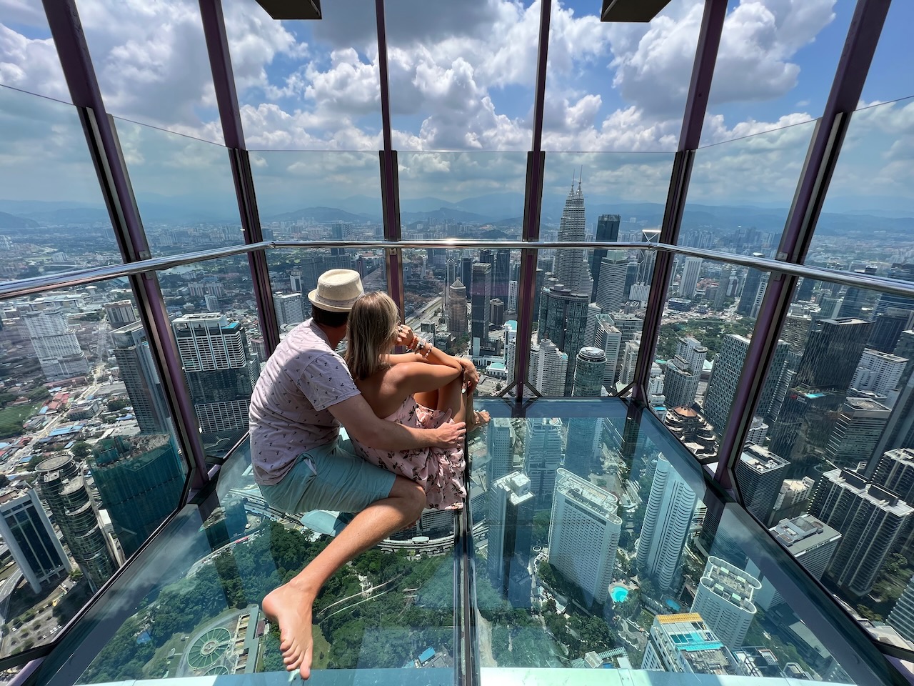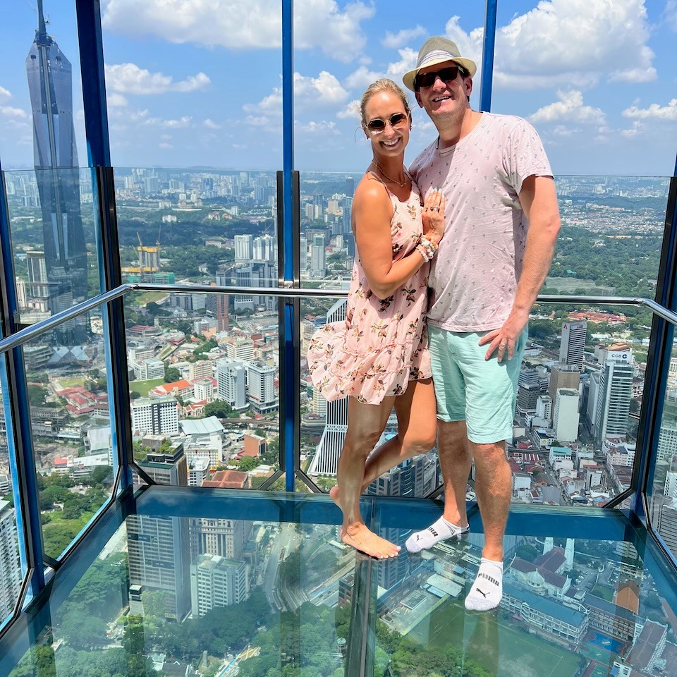 Typically we end with the beach, so I was not sure if we’ll like it going back to the city, but KL pleasantly surprised us. It was a lot less busy than what I expected, weather was good and the hotel we stayed at was wonderful! In fact, we had a hard time deciding which luxury hotel to book, because they all were SO reasonably priced. Banyan Tree Kuala Lumpur attracted us with their tub near the window, perfect location and the spa. The rain shower even had changing colors and Sean sang “Purple Rain” with the purple lights on 🙂 . It was a vibe!