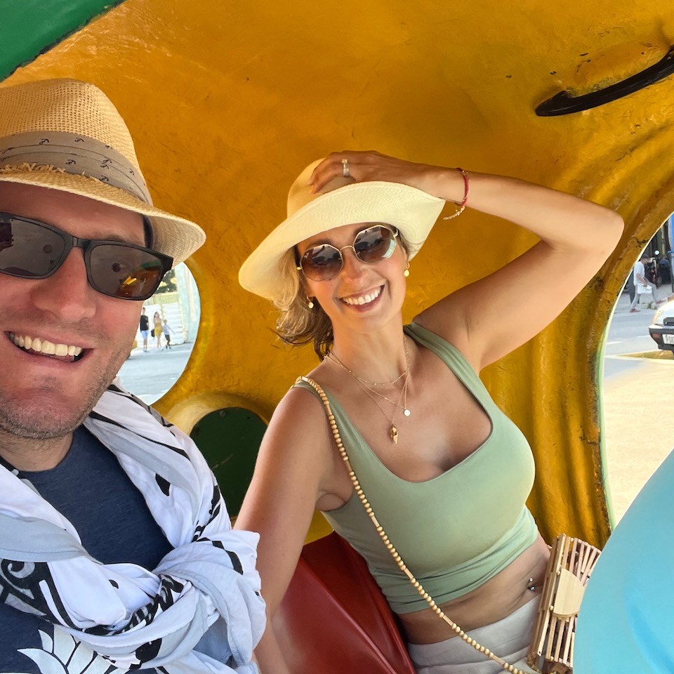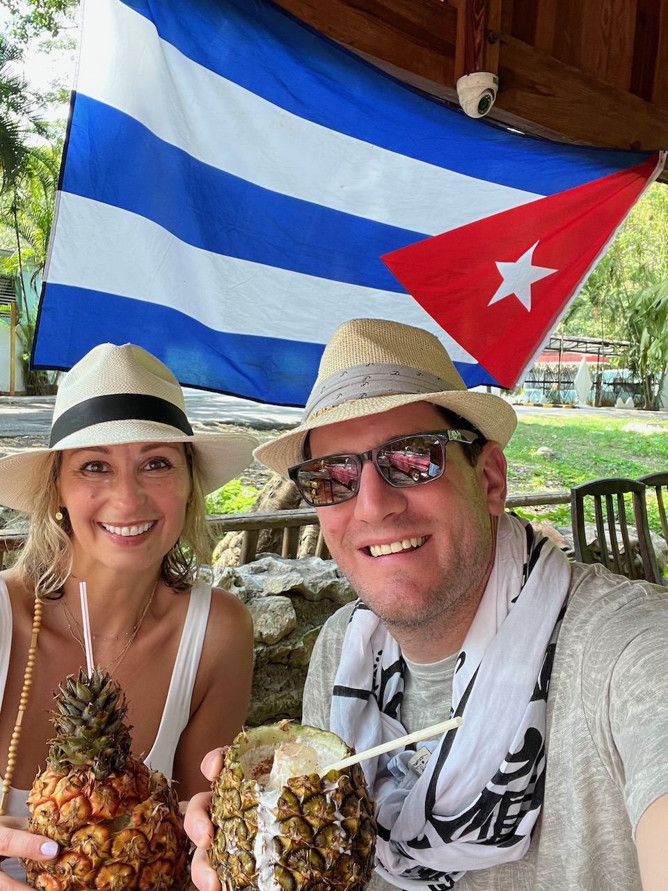 Perfect place for more photos in the antique car and to have a piña colada out of the pineapple. Rum was self serve- add as much as you’d like (me) or have none (Sean).