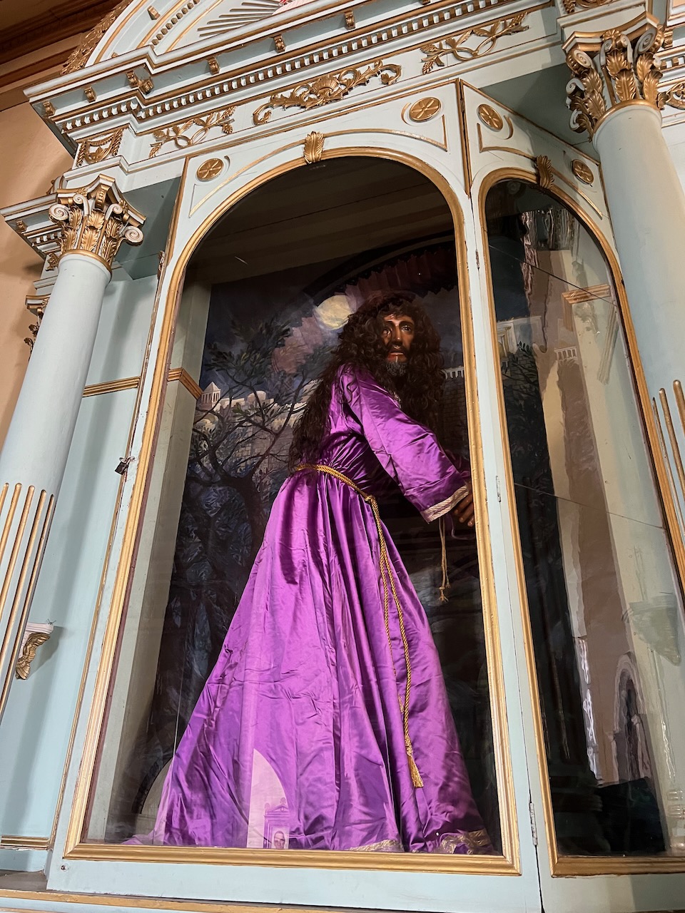 Surrounded by the cobble stone streets and a charming square, this church has a wooden altar and what we found very peculiar- the statues wearing WIGS. We’ve traveled to many places and have seen a fair amount of churches, but Jesus with the long, flowy, real looking hair was something we’ve never encountered before.