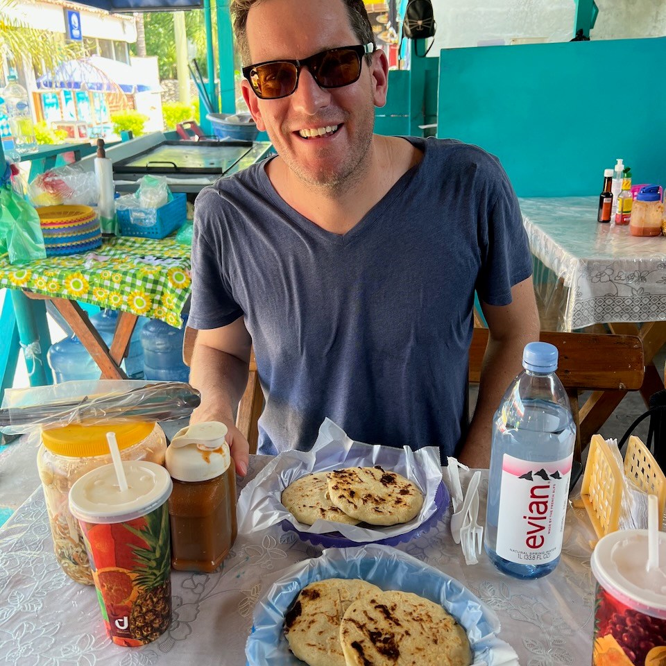 Coming in from the street you’d never picture that it opens up to this incredible vista of Lake Suchitlán. I tried my first pupusas here as well. It’s a national dish of El Salvador, made out of corn dough and stuffed with whatever you choose- cheese, beans, meat etc. Wash it down with the local Pilsener of Salvador beer and your day will be complete :).