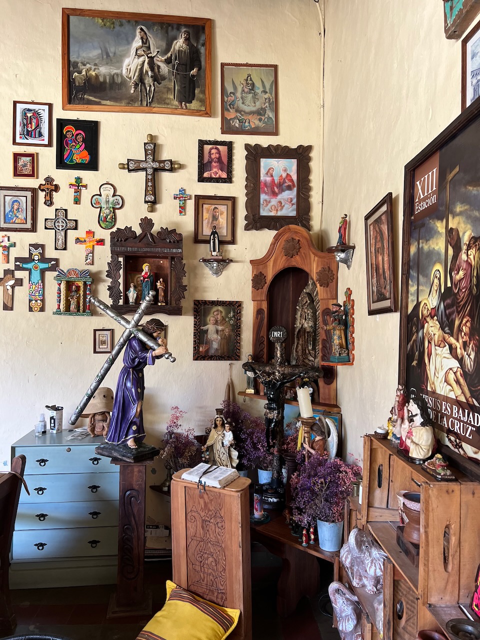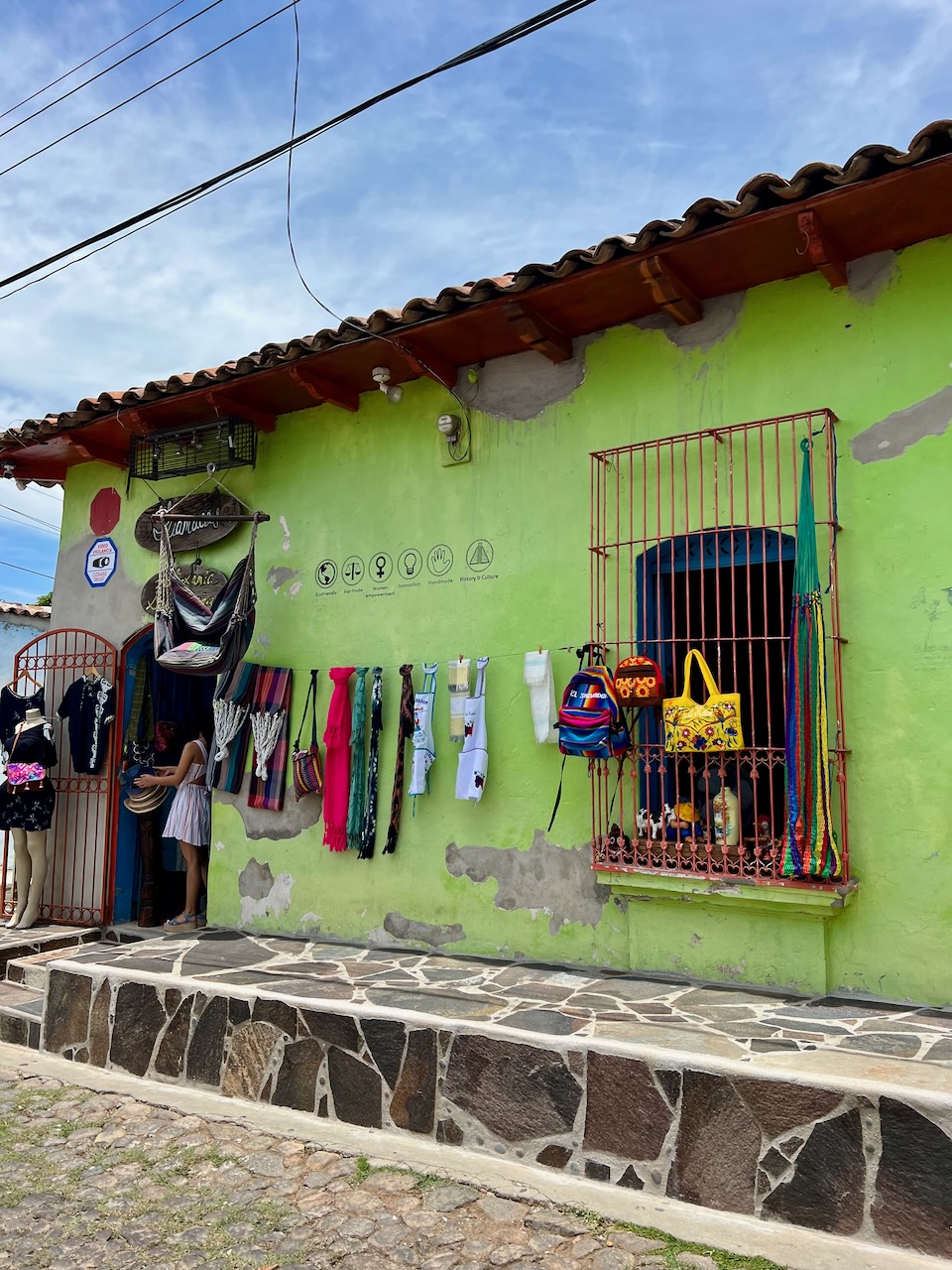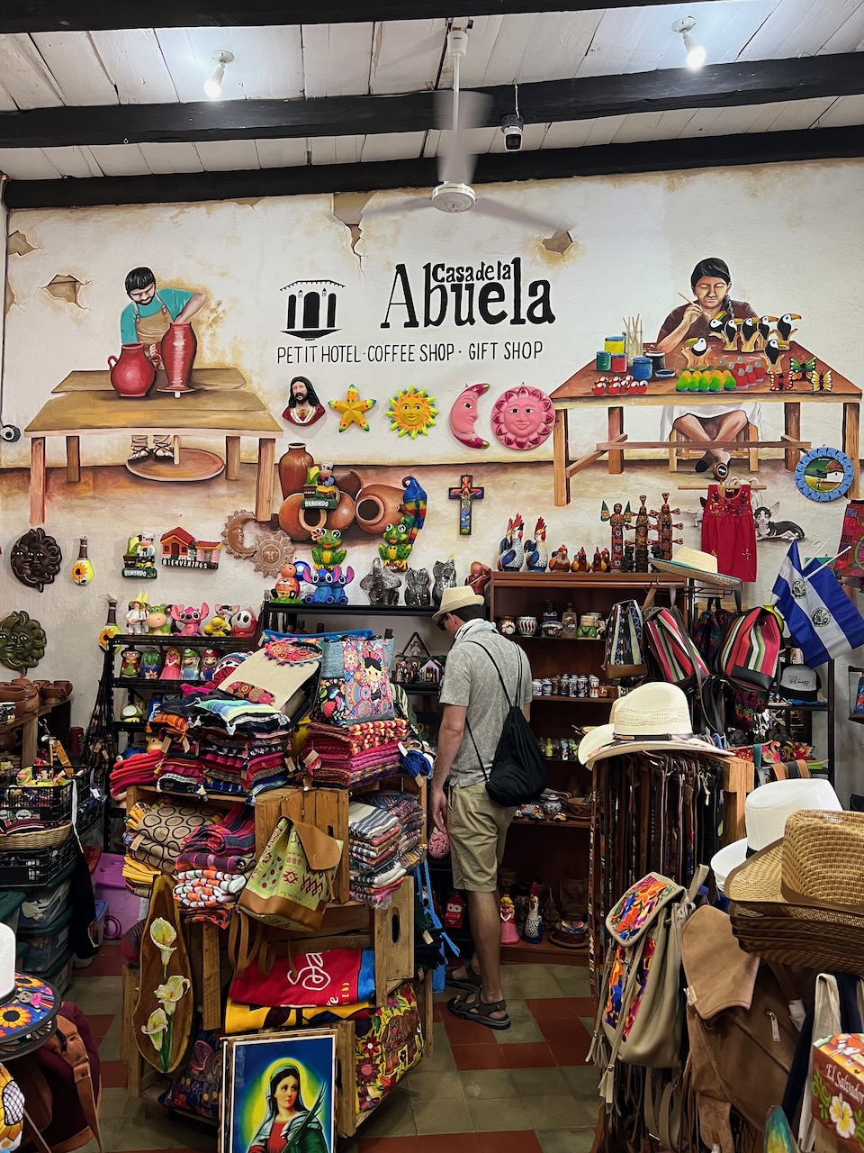We saw a colorful corner store- Casa de la Abuela (grandma’s house) and ventured in. Besides cute little trinkets, it was connected to a coffee shop- what a perfect find! Sean only drinks decaf (which they did not have), but he got to try cafe de maiz– corn coffee (caffeine free)- it tasted just like the real coffee! I got a cup of local Salvadorian cold brew and it was strong and invigorating.