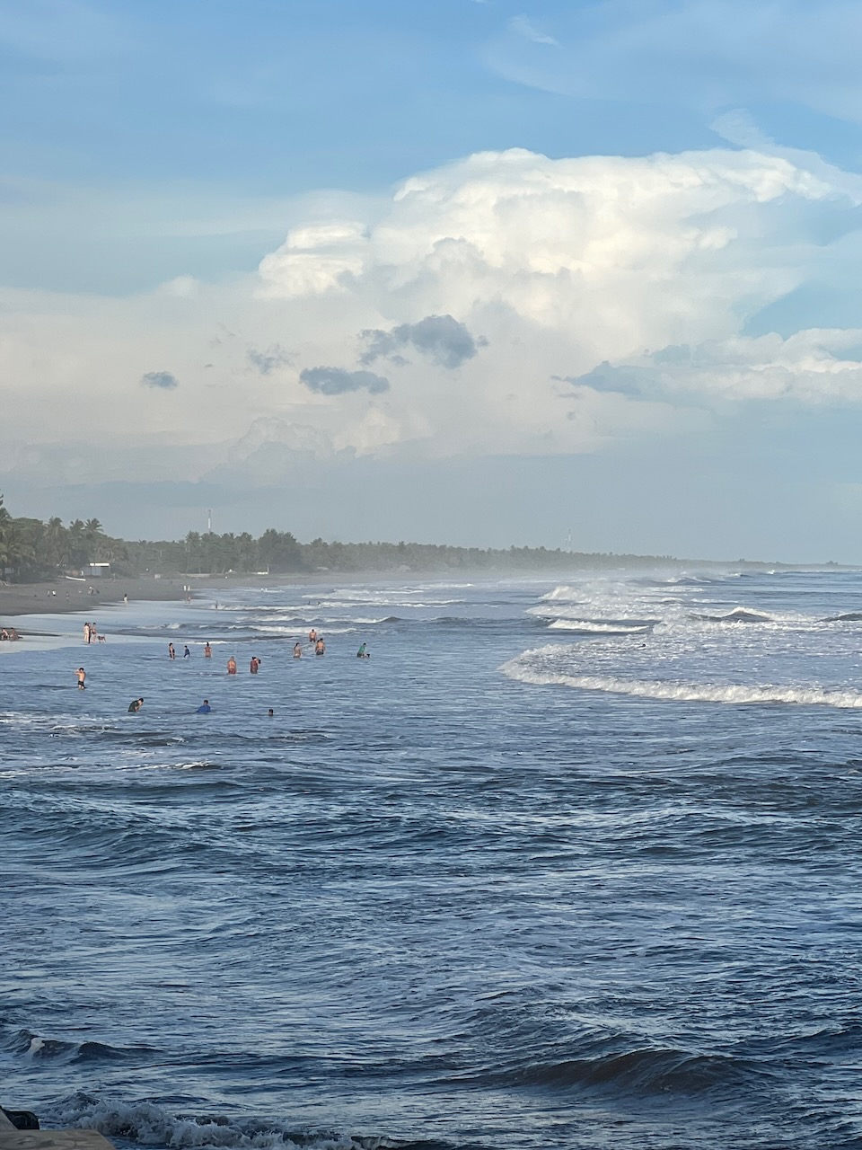 I guess who needs to dry their hair when you have a warm pool and even a warmer ocean to swim in! El Salvador is famous for the good surf waves, and our hotel had long boards, but for us the waves seemed to be a bit too big and we chickened out. We swam in the ocean a bit, but even that was a little scary- tall waves and the black sand making the water seem dark. Maybe I am spoiled, but I definitely prefer clear water where I can see what I am stepping in.
