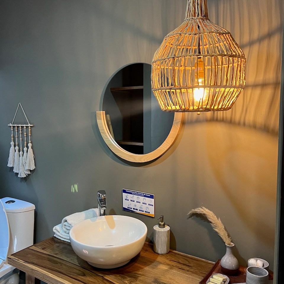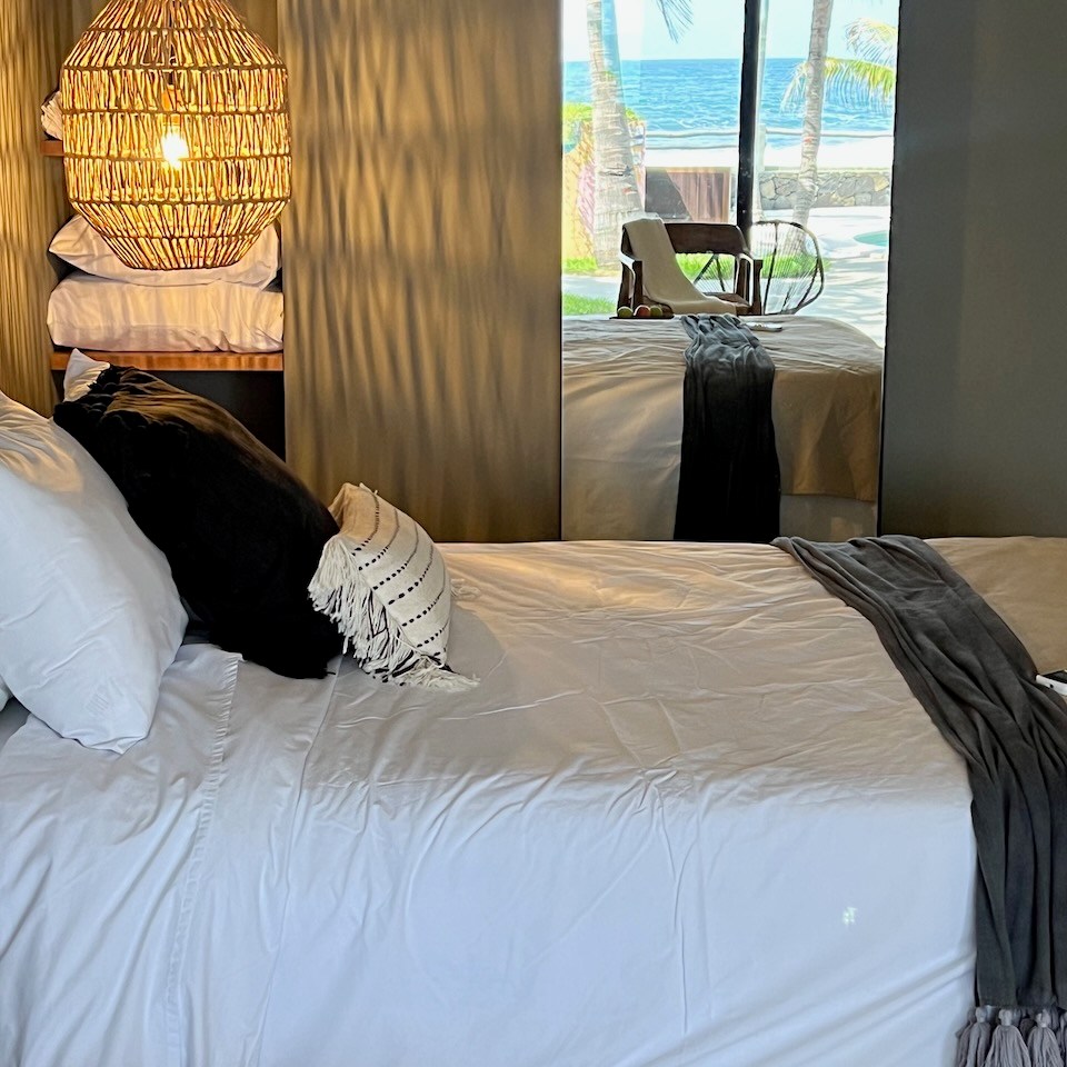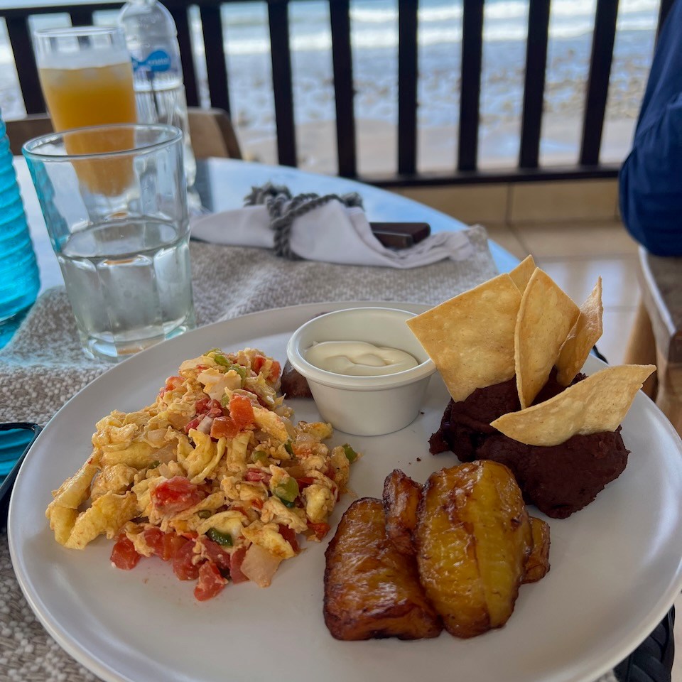 Small improvements that could make this place better- we really wished for a king size bed! There was a pull out couch next to our double bed. There was plenty of space in this giant room, so why put a small bed? It was a bit of an adjustment for us to sleep- Sean and his multiple pillows and me trying to not fall out 🙂 . Another odd thing- they did not provide hair conditioner, body lotion or the hair dryer! We communicated with the staff via WhatsApp and I even asked in Spanish, since their English was limited. Nope, they confirmed that they have an iron but no hair dryers. Given how hot and humid the air was, my hair was frizzy either way, but I just found it strange that a modern luxury resort did not have a single hair dryer on the premises.