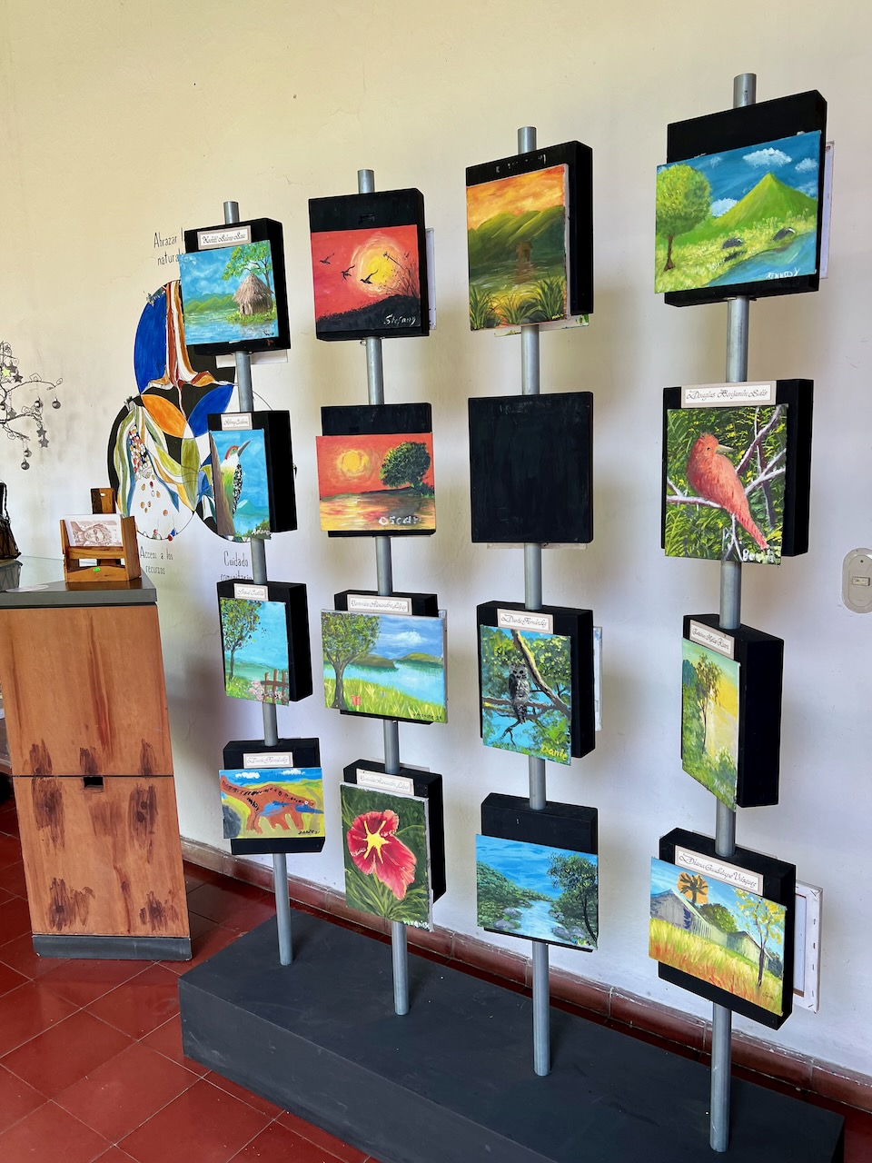 Talking about art. We did not come to Suchitoto only to shop. We also wanted to see the local art at the Center of Art for Peace (Arte Para La Paz). It’s a very nice art center/museum, but the guy working there did not speak English, so brush up on your Spanish 🙂 . I was able to converse/understand what he was saying and to translate it to Sean. It’s worth a visit!