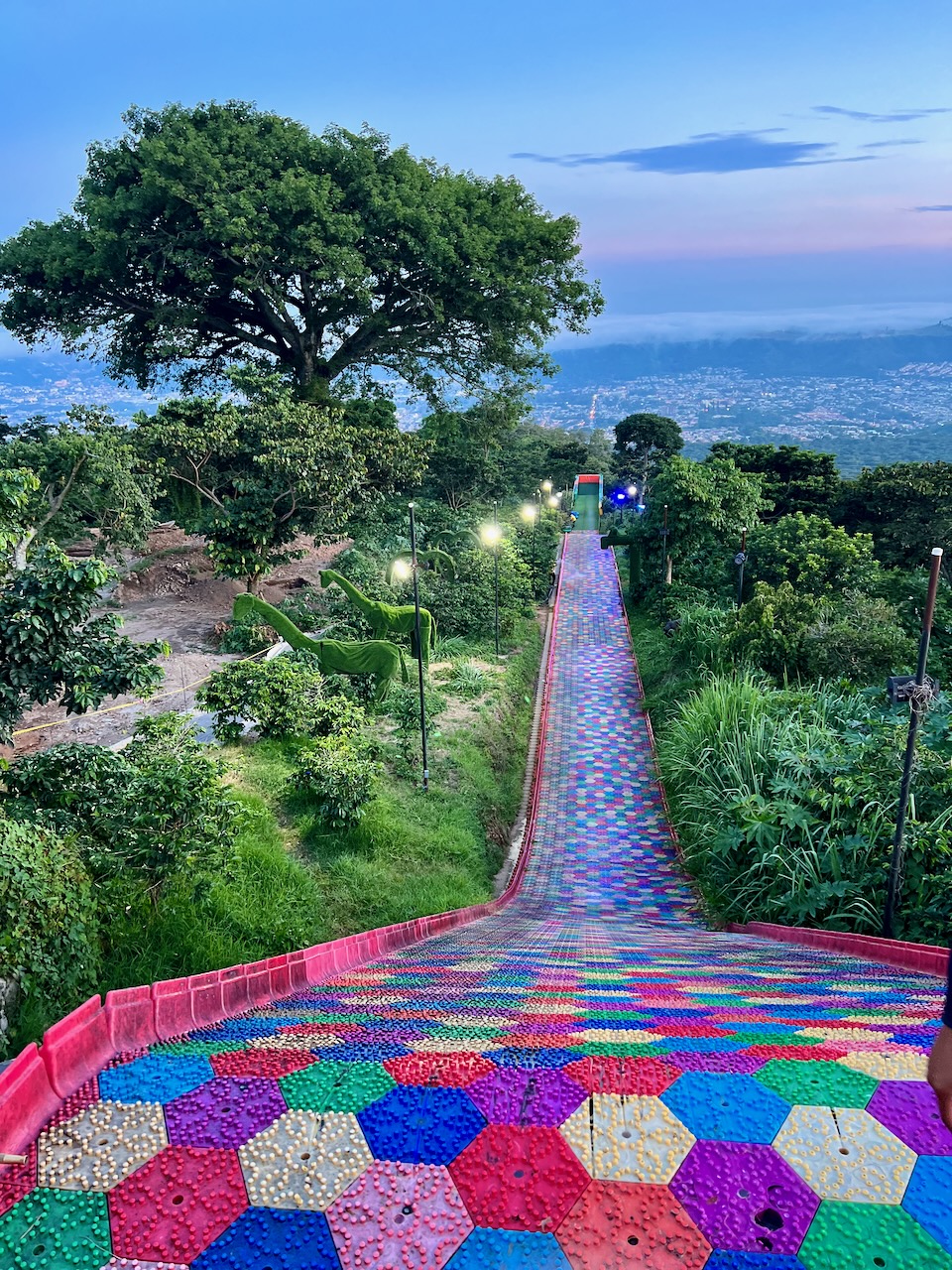 The views from the top of the slide are spectacular, we were there right around sunset and watched the clouds roll in. It costs $5pp and the crowd seemed to be on average 12-20yrs old. But we did not get discouraged and went down with the kids- young at heart that we are 🙂 . It was about an hour long wait, so be prepared for that. They do a lot of things manually- like dragging the rope down to collect the tubes, pouring water down the slide- there is room for improvement, but it was a fun, adrenalin filled activity before dinner. It’s one of the top rated things to do in San Salvador, so probably it’s something to consider while you are there!