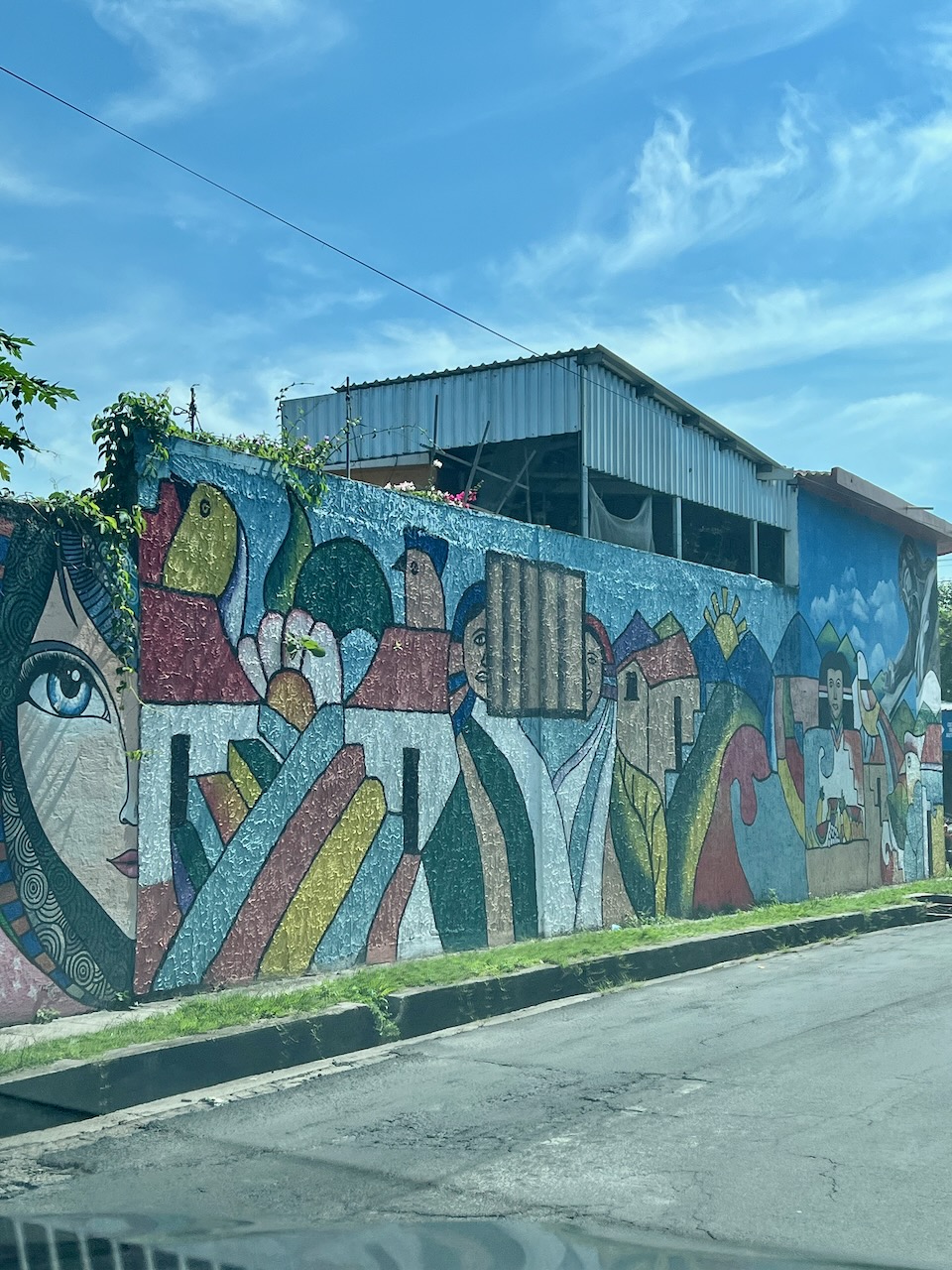 We drove by the colorful street art in the neighboring towns and made it to the center of Suchitoto before noon. The main sight (at least that’s what we were going for) was mid 1800s built church- Iglesia Santa Lucia.