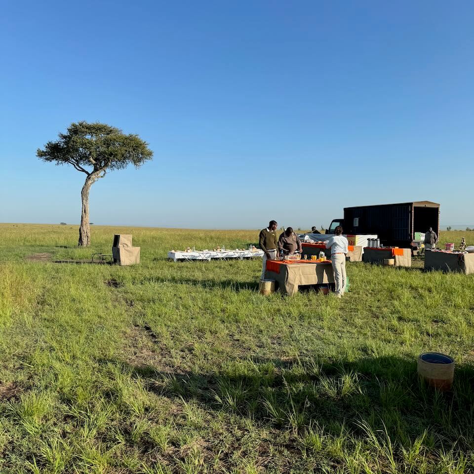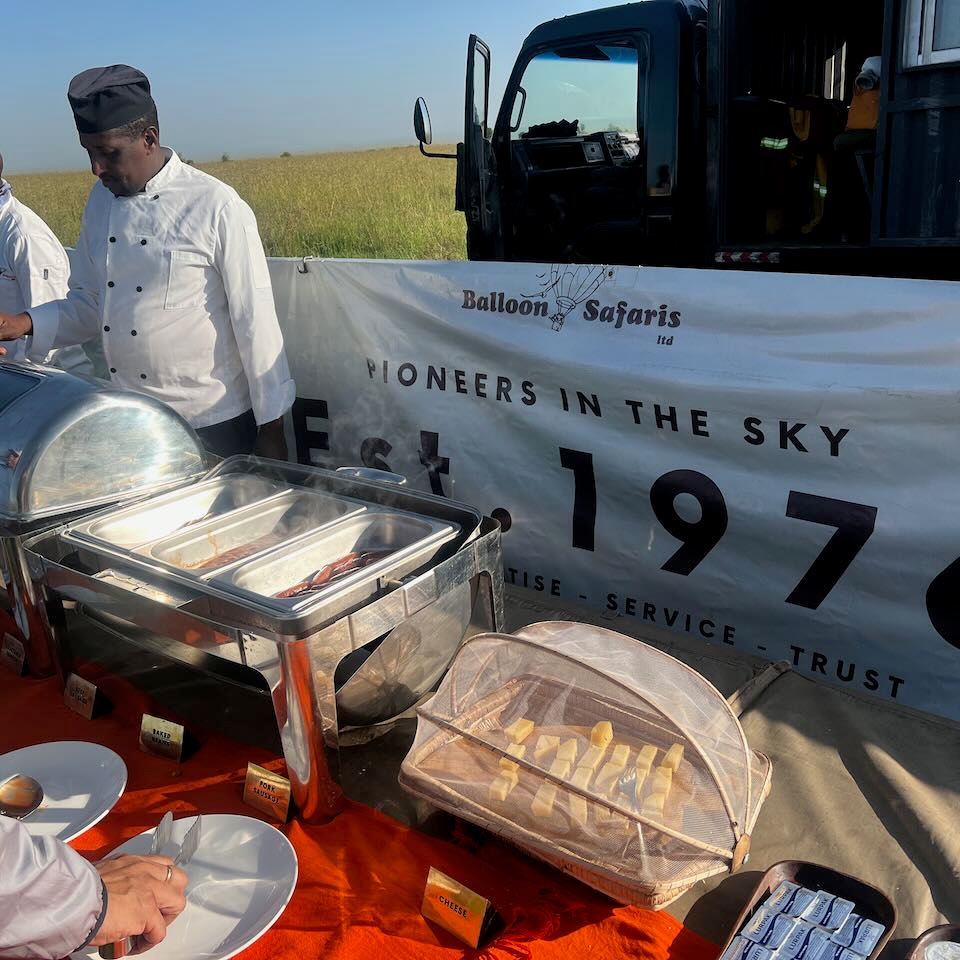 There are several companies, but to simplify the process we booked it directly through the camp ahead of time. It is pricey, but it included the transportation (about an hour drive from the camp) and the “Champagne breakfast in the bush”.