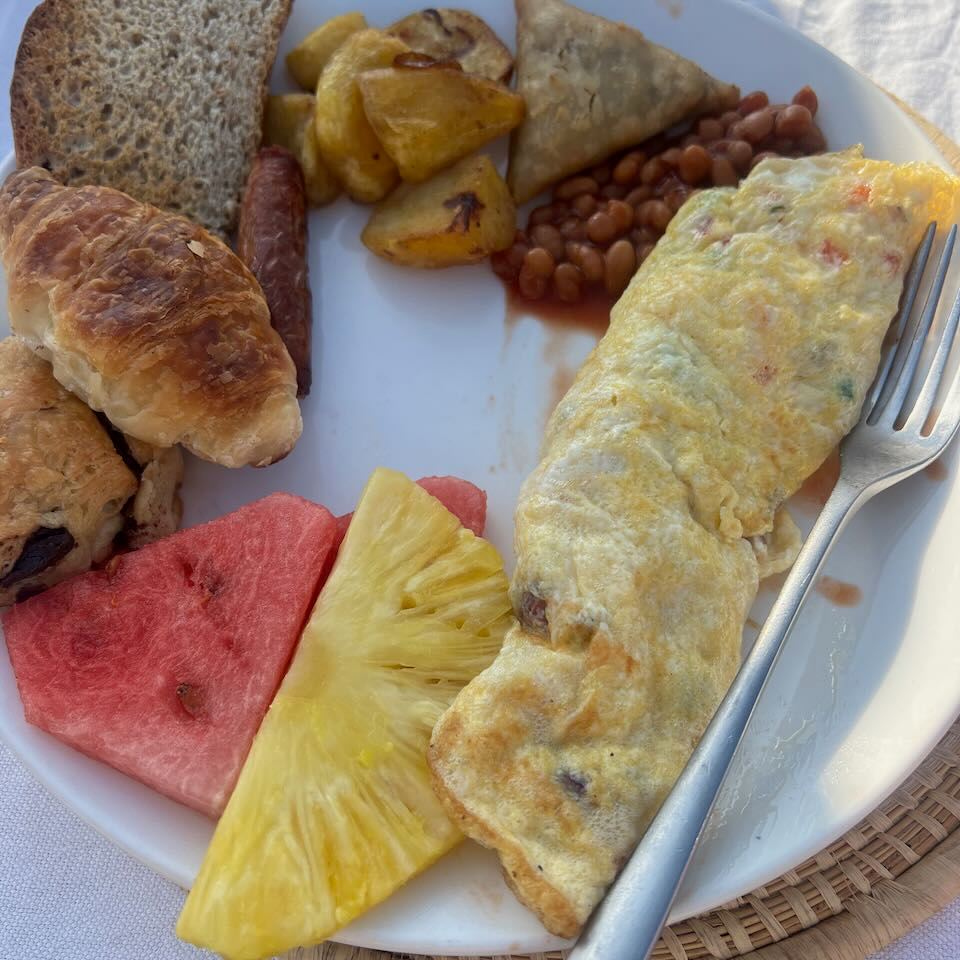 Not only were we greeted with champagne (or juice for those that don’t drink), but we had a full breakfast spread. Even hot eggs were made fresh right there in the middle of nowhere!