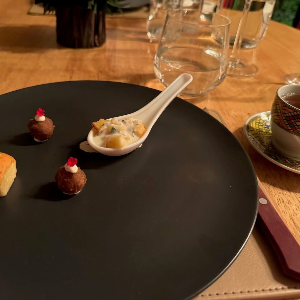 Young chef and his fiancé were taking turns talking to the guests, each meal (there were 7 courses) was a piece of art and extremely delicious. I chose wine and tea pairing and at the end for both of us it was $120 USD. Something this incredible would be at least twice more, maybe 3 times anywhere in the USA. I don’t know a place that even would have the attention to detail that Embark delivered. We felt like at home with a private chef and a super attentive staff.