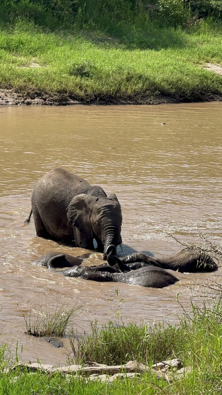 This was the only sad sight we spotted during our game drives. The rest was a lot of happy, free roaming animals. We stopped to have breakfast near the river full of hippos and close by a family of elephants were bathing and playing in the water!