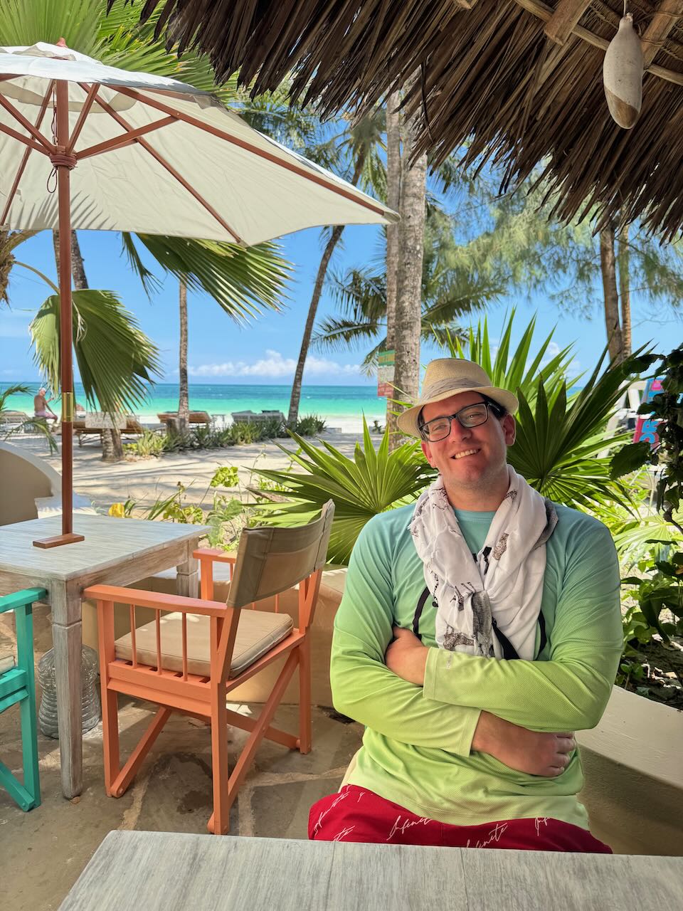 But the best part was the beach and the color of the water right in front of this restaurant! Even though it’s Diani Beach, it was such a prettier shade of blue than the water that was in front of our hotel. Maybe because we had some rocks around our area. We were very glad we came!
