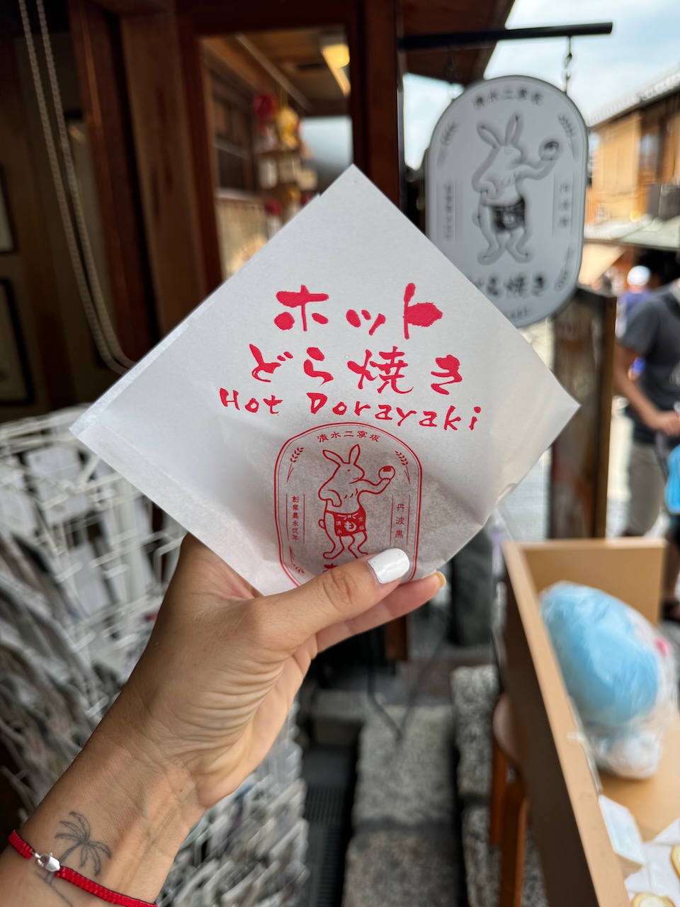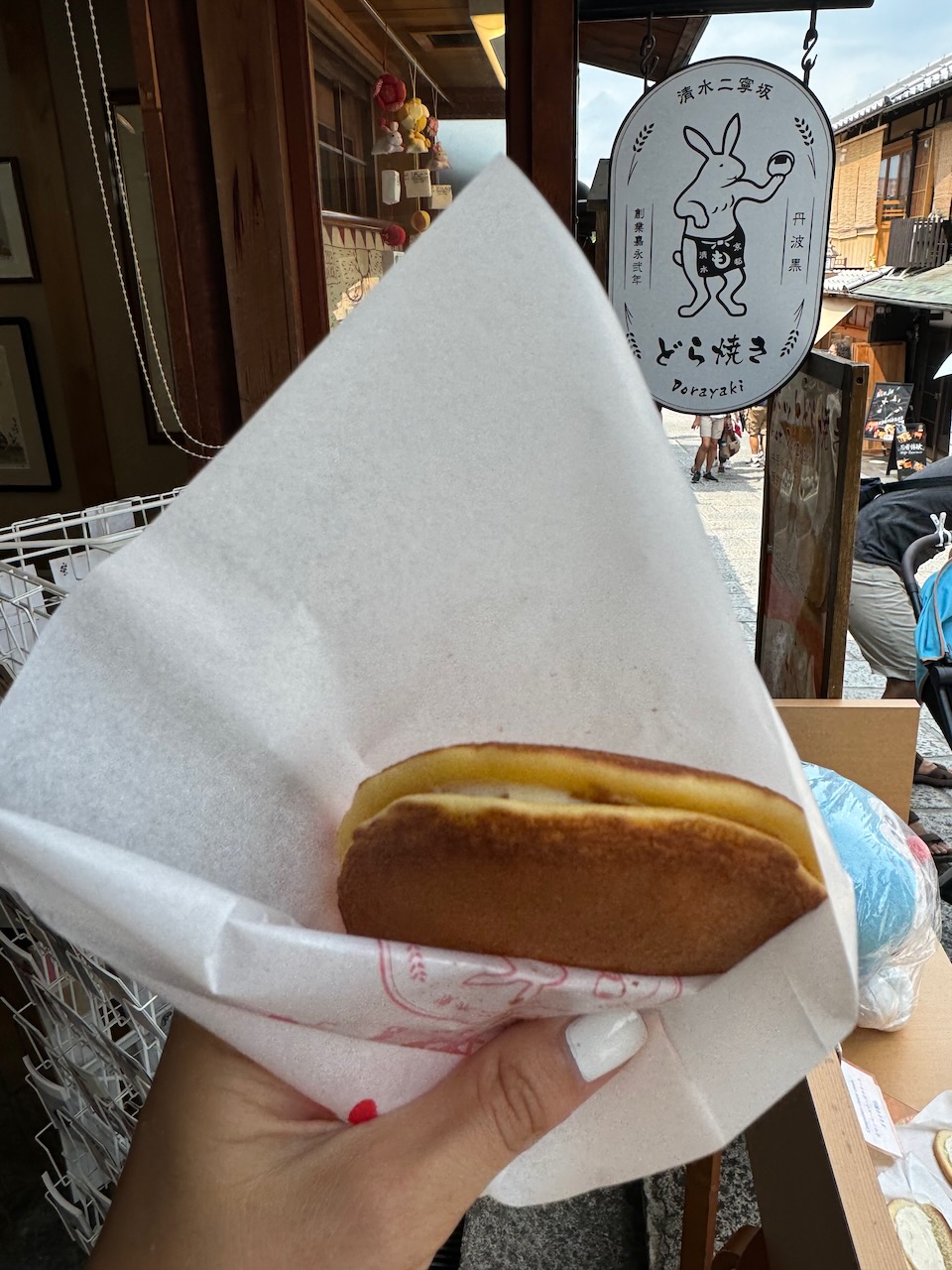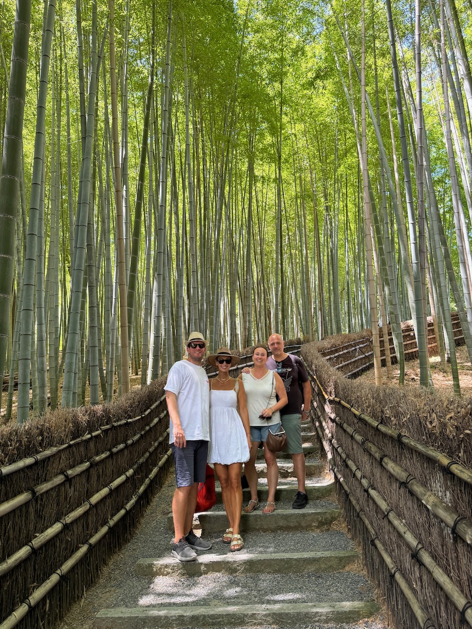 And now it’s time to make our way back. It’s too hot to walk so we grabbed a taxi and tried to have lunch at Arashiyama Itsukichaya. Unfortunately we did not have a reservation and the place with the view of the river was fully booked. We snacked on near by sold daifuku strawberries (dessert we liked in Tokyo) and a hot dog from the stand. Was not much of a lunch, but it will hold us over for now.