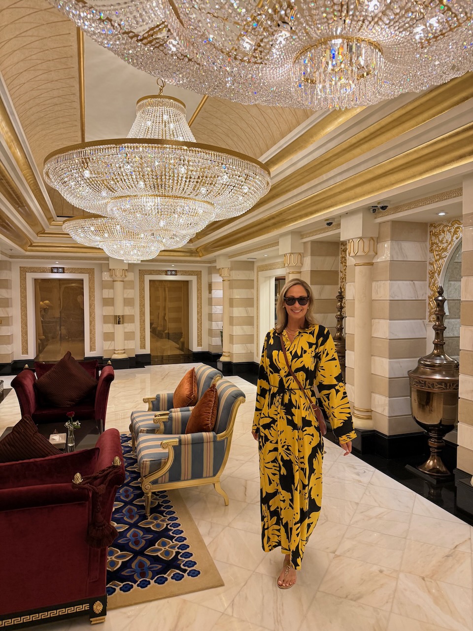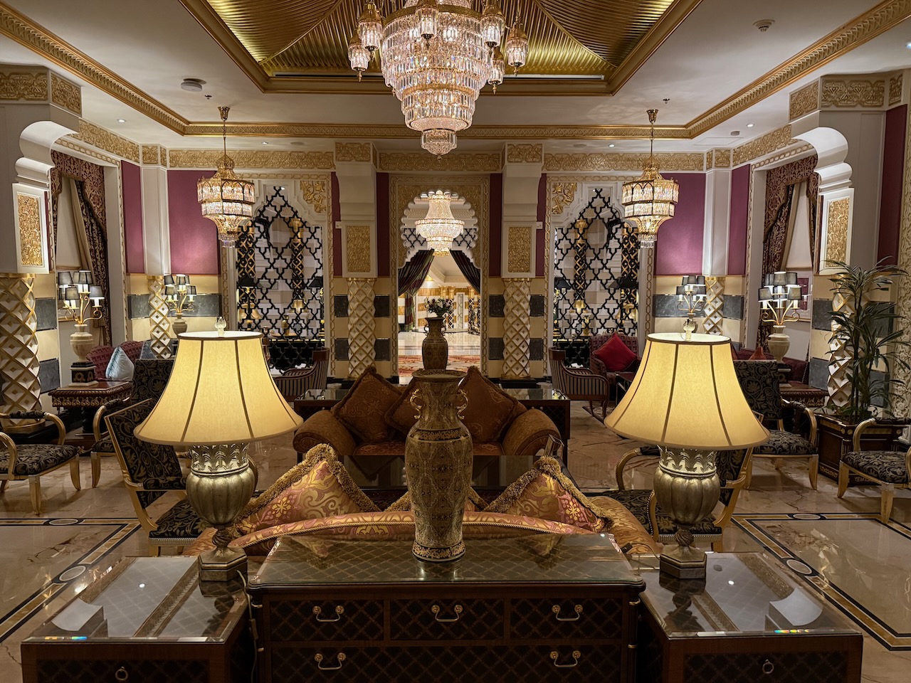 Did I say glowing? It’s more like glistening in gold with a three-story Swarovski chandelier! The name that translates “Palace of the East” this place wowed us every time we stepped foot into the lobby.