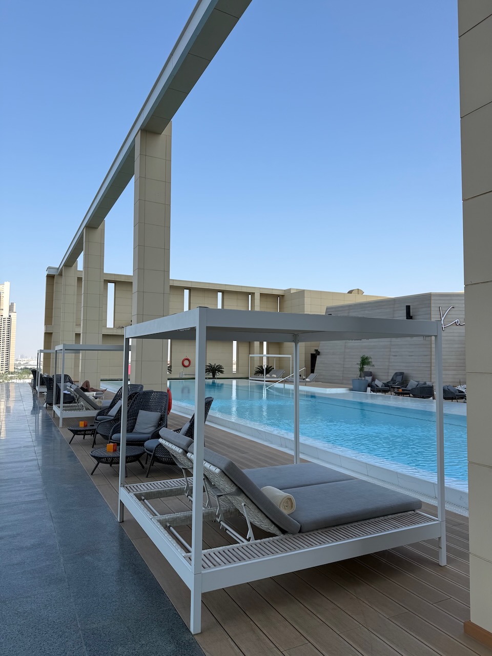 We considered staying here and came to check it out. There is a nice rooftop pool (with no restrictions of allowing only men and kids) and a view from there was not bad- you could see Jeddah F1 race track. But overall we found our hotel much more impressive.
