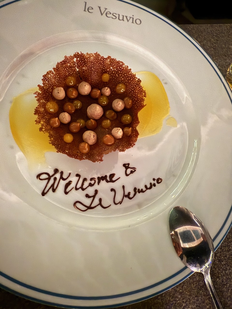 We didn’t go to the actual Yacht Club, but walked in the beautiful area around it. Our dinner reservations were at Le Vesuvio a nice restaurant with a view of the marina.