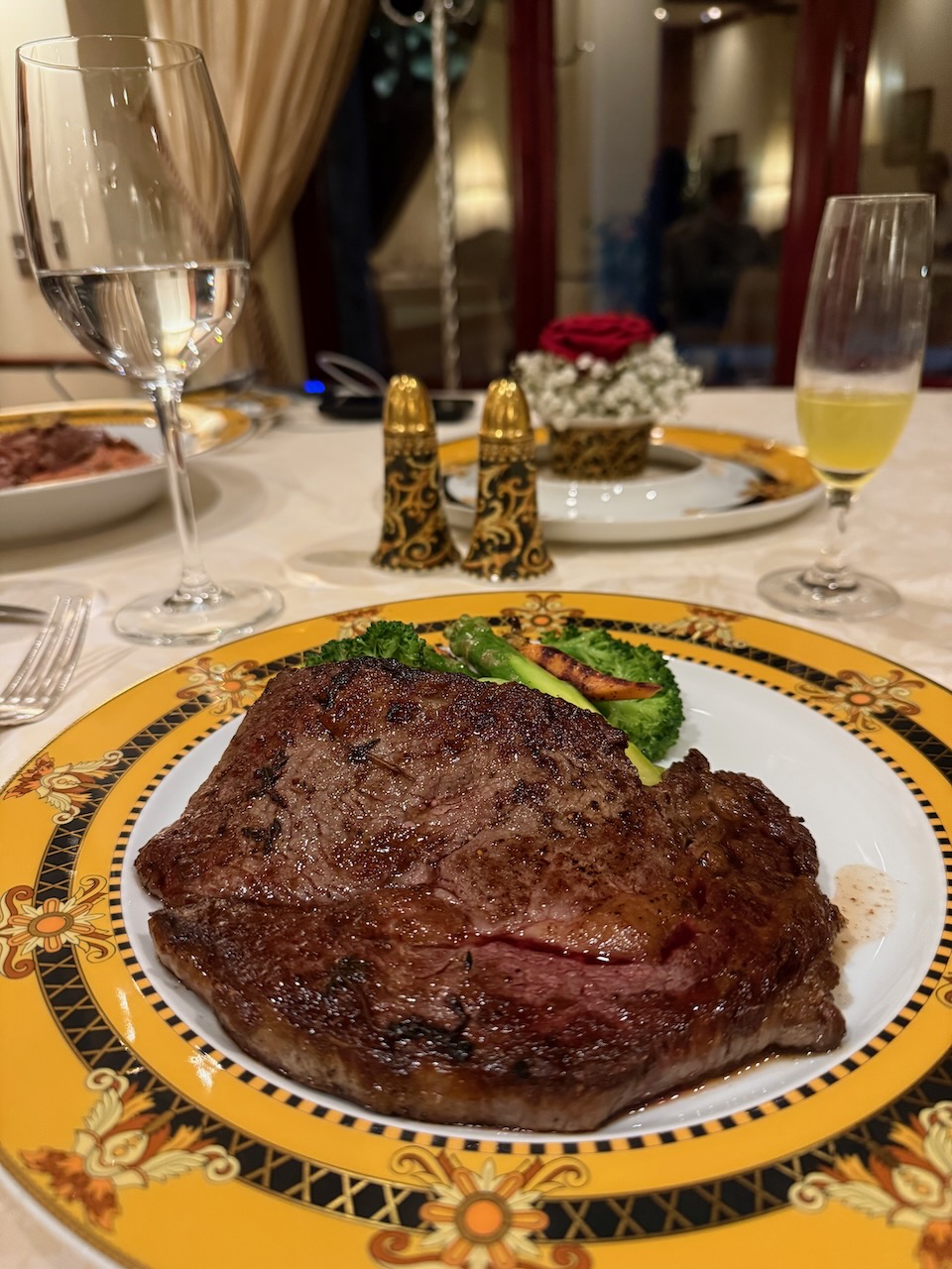 On the first evening we were tired and just wanted to get dinner and go to bed, so we ate at the Aromi Restaurant right at the hotel. It was delicious wagyu beef and truffle mashed potatoes. No alcohol (which we later found out) is allowed in the entire country.