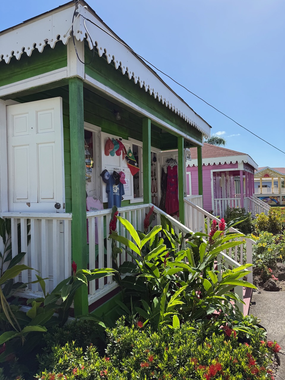 Before we lay down on the beach we wanted to see if we could find some local goods. The colorful artisan village was cute, but only a few shops were open. We got a magnet for $10 USD (Nevis is quite pricey), looked around and that was it. Most clothes were not locally made, so it was nothing worth getting.