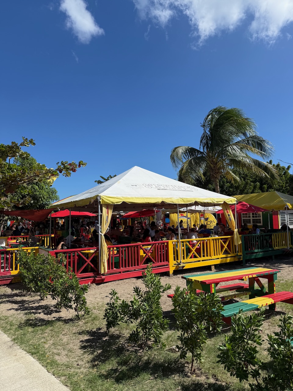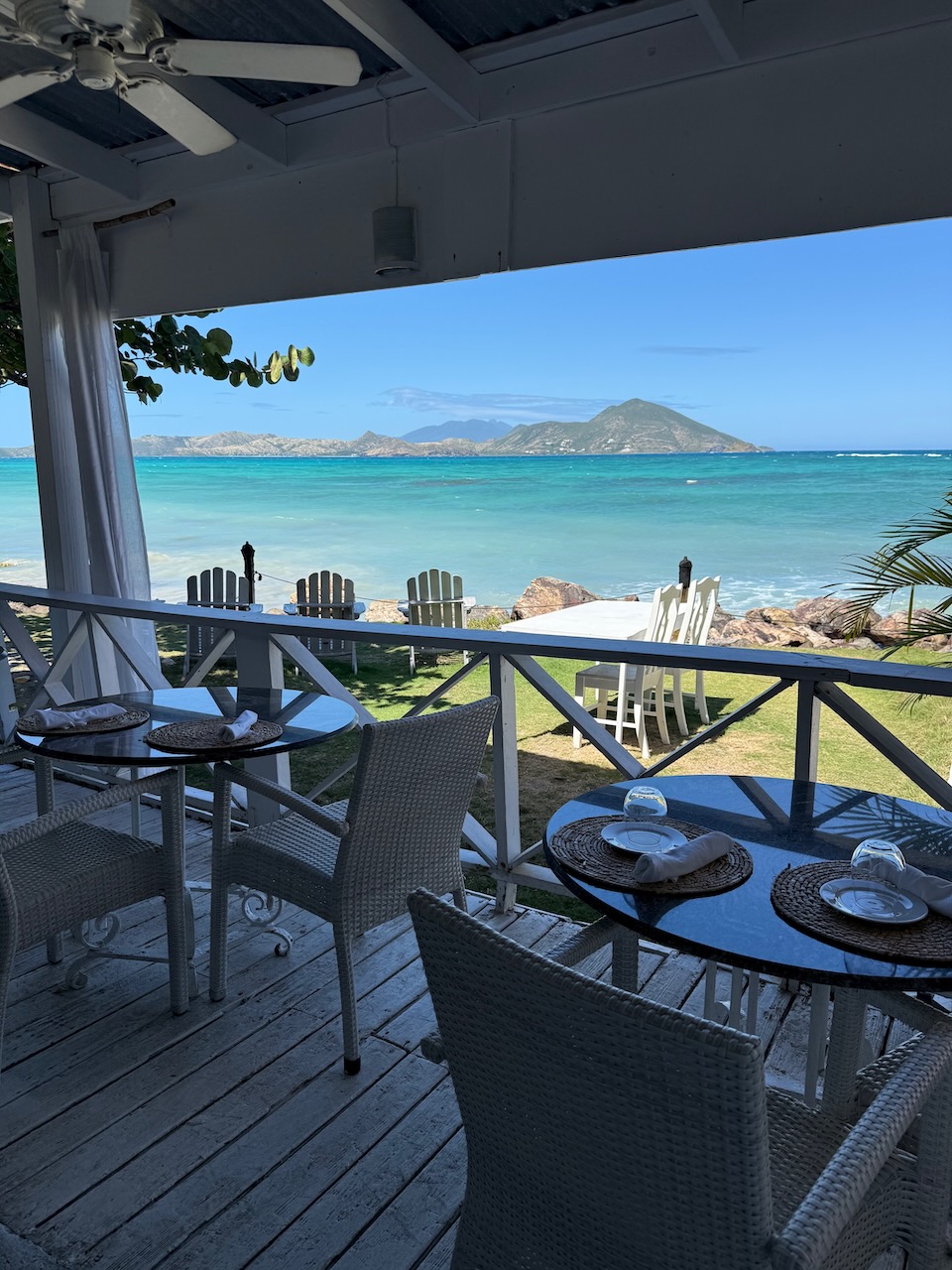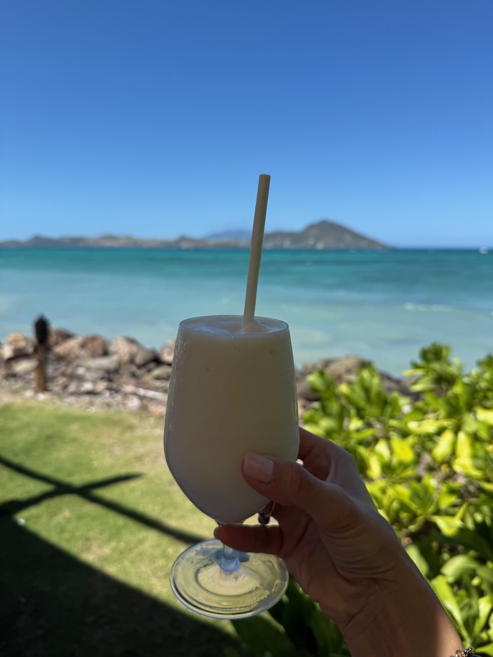 The place has a gorgeous view of St. Kitts and the blue water. Piña colada was perfect and so was the grilled mahi mahi and the curry chicken dishes. We still talk about that food!