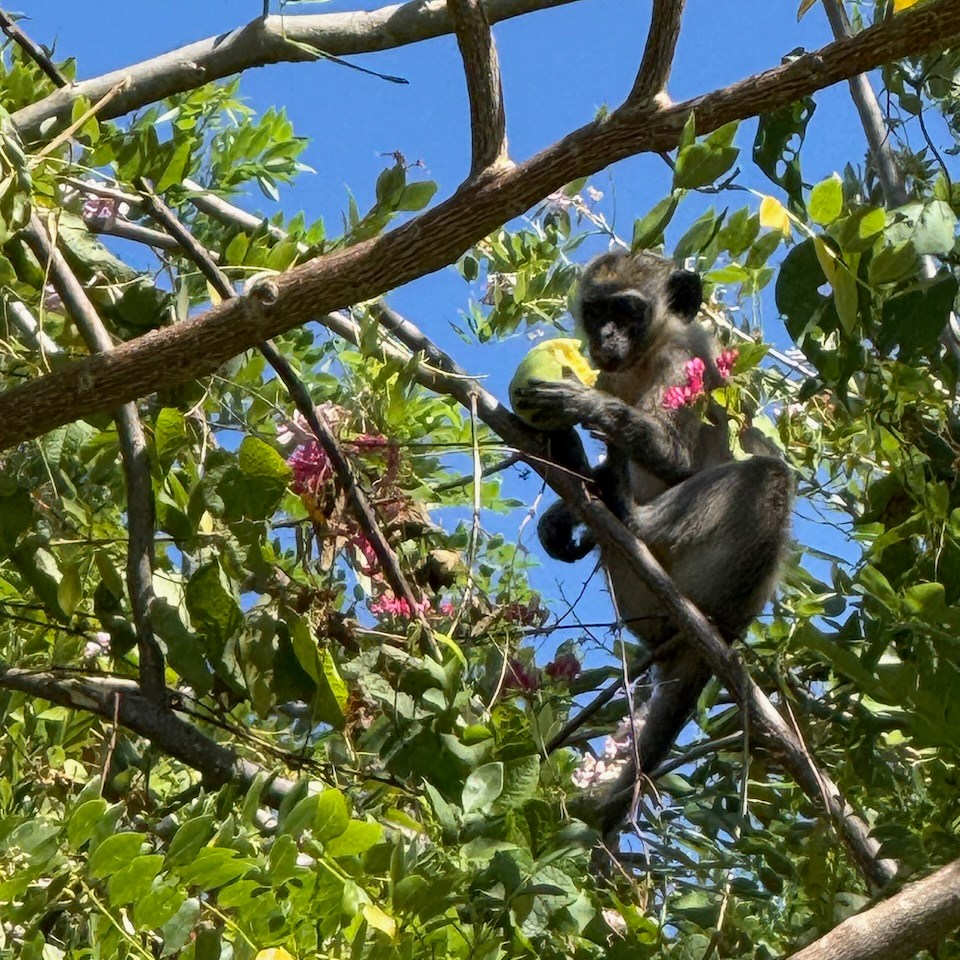 On the way from the Hamilton Estate we saw monkeys cross the road and climb into a tree. We stopped and watched a few of the cuties sit on a branch and eat some fruit.