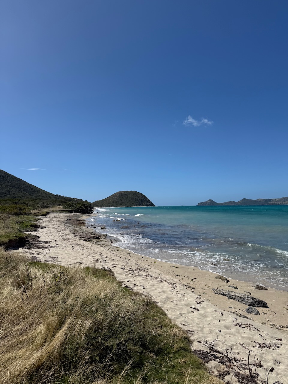 We did not drive around the whole St. Kitts island, so I can’t attest what beaches are up north. But from what we have seen, Cockleshell was the nicest beach on this island. No seaweed, white sand, wide and long- plenty of space. Even if there were more people it would be hard to feel crowded but once again-we had it pretty much to ourselves!