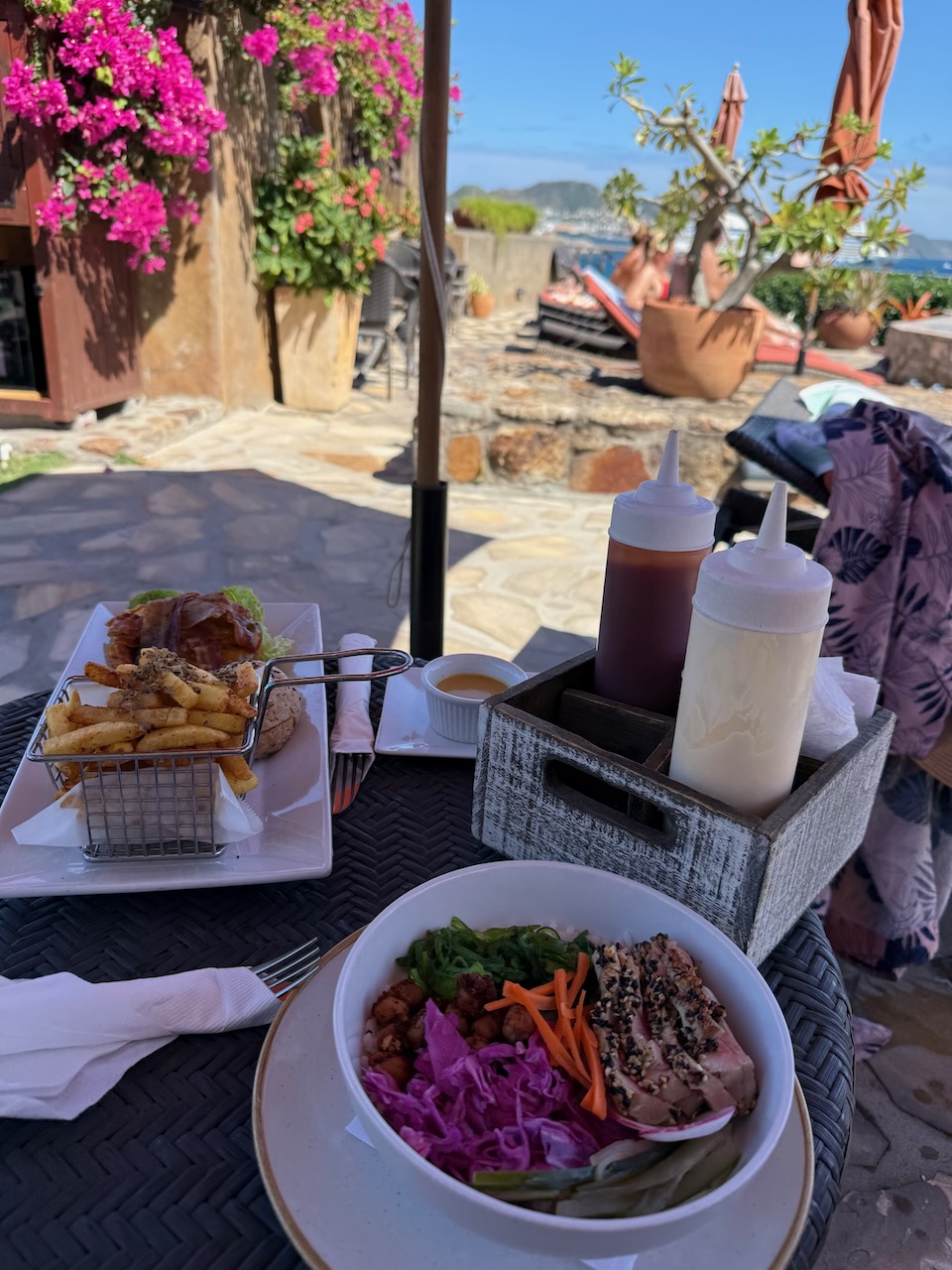 It used to be someone’s house, now it’s a restaurant that also sells day passes to enjoy the views by the pool! We had a great dinner and chatted with a very friendly server (he recommended Maggie’s coffee shop for breakfast), and we immediately reserved spots for our last afternoon in the islands.