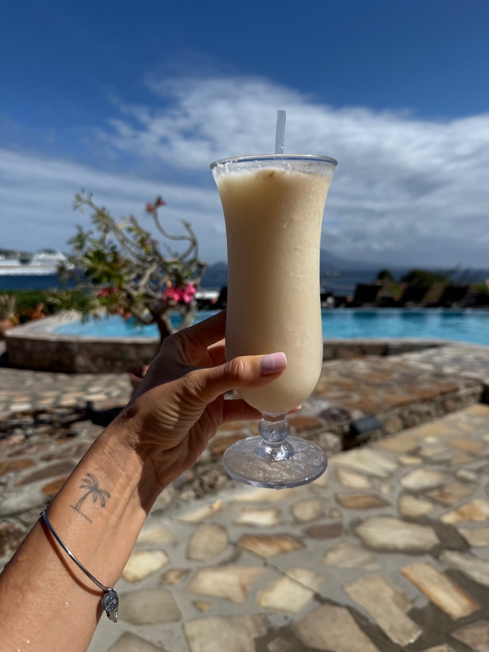 We spent the whole afternoon here and relaxed. There are beach chairs and umbrellas for rent and you have a few options for food. At 1.30pm Lion Rock Beach Bar & Grill opened and we had their delicious lunch. I also tried the fruit punch and a piña colada, because when in Rome…(I mean St. Kitts…)