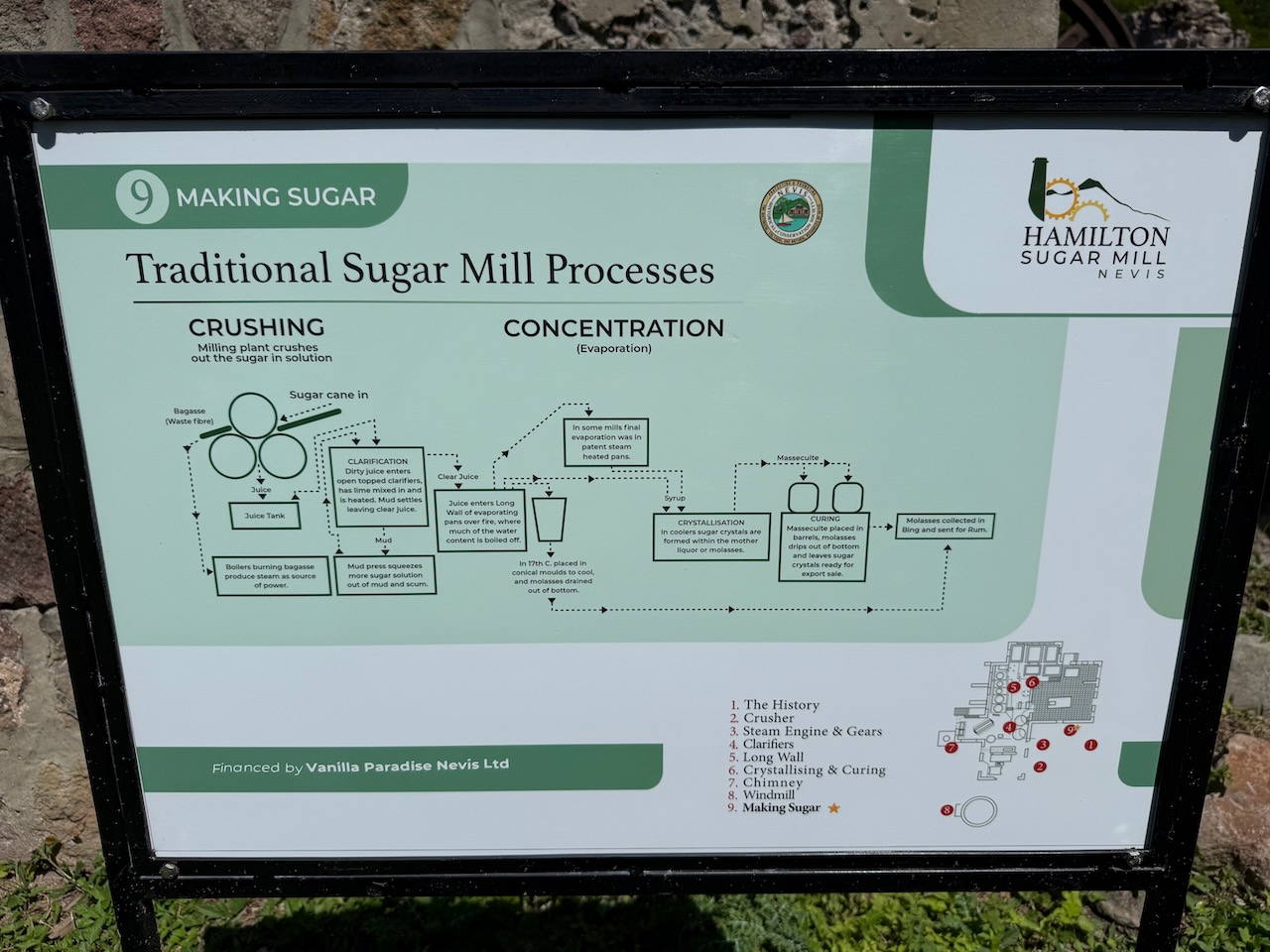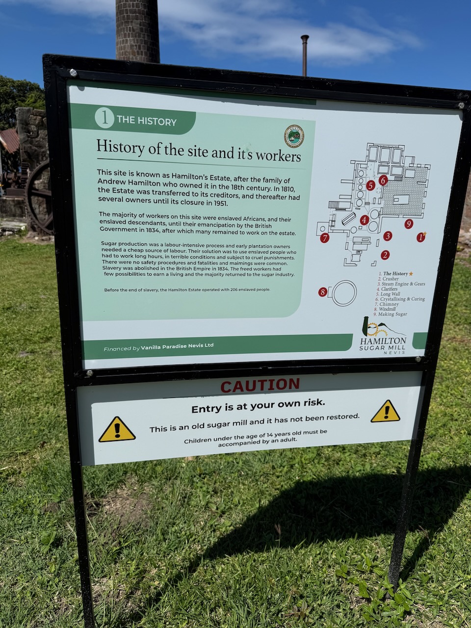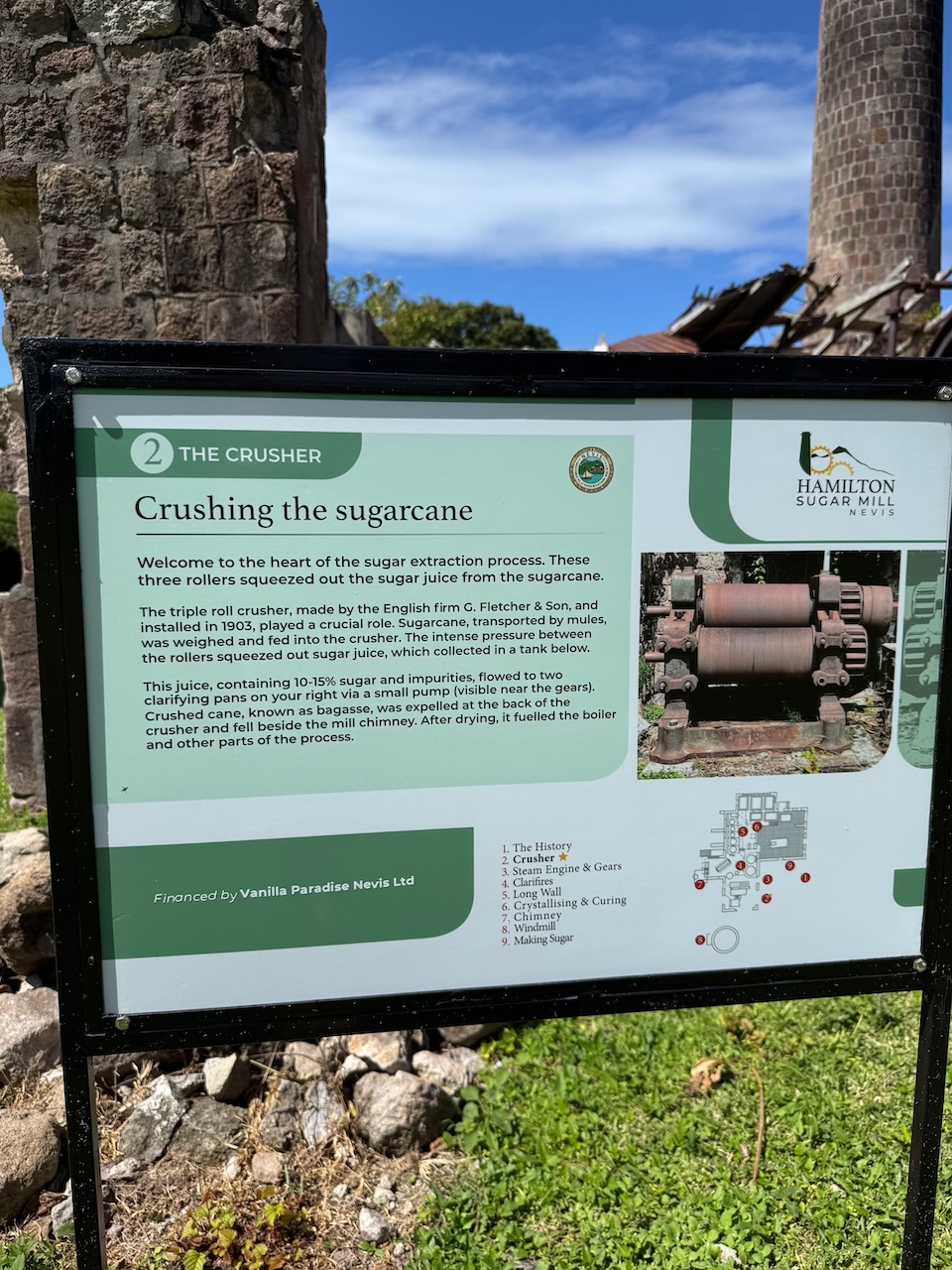 To get to this former sugar mill we needed to drive up a steep road, but our little car made it with no issues! The sight now is ruins, with former machinery rusting away, but it has a well organized and detailed plaques near each fragment, so it’s great for learning some of the island’s history.