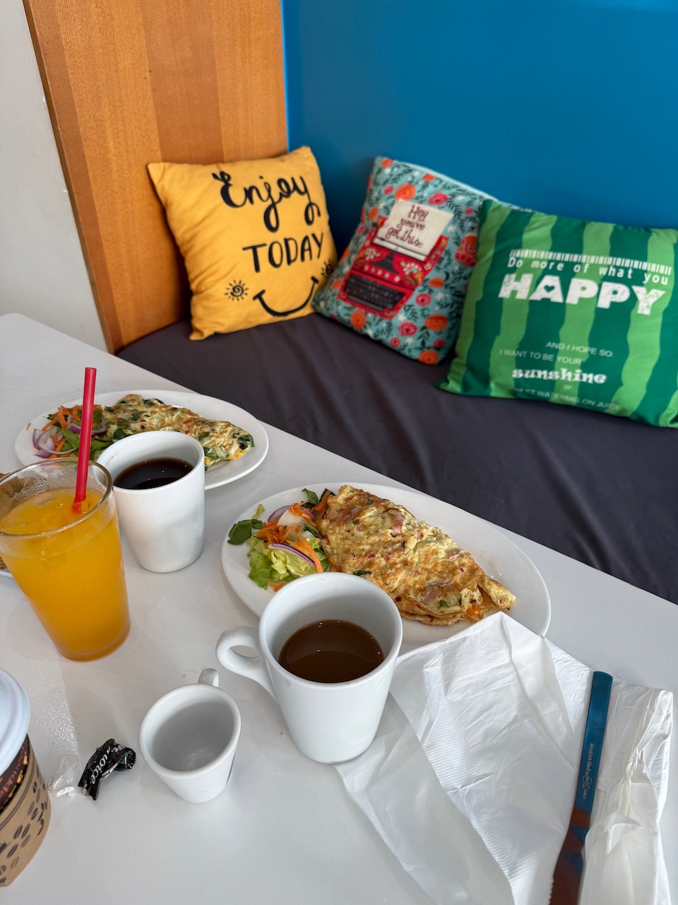 On our last morning in St. Kitts we wanted to try a different breakfast place and checked out Maggie’s Coffee Shop. Also great menu, pleasant staff, and a cute puppy that kept us company during the meal!