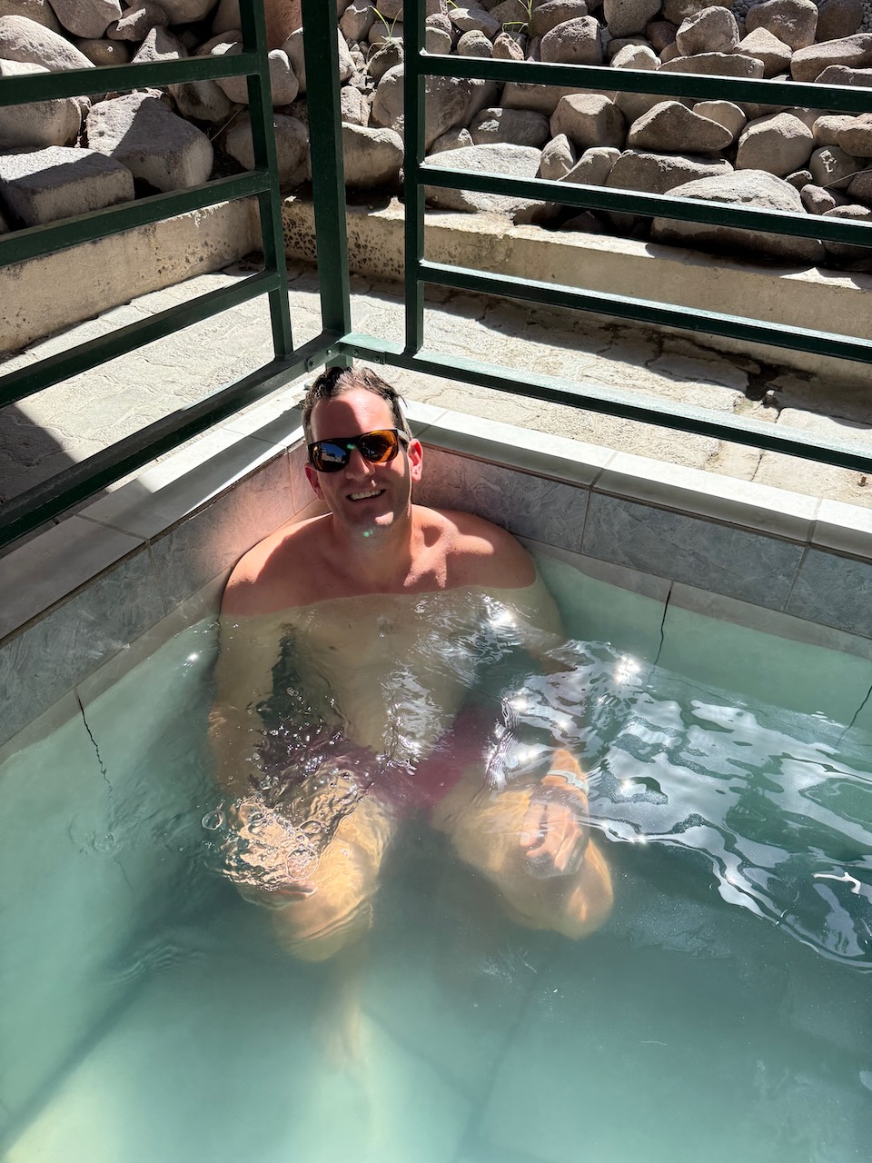 One of the pools was fully tiled, while others just had pebbles on the bottom and had more dirt, but we tried them all! When we arrived they were empty, but then the bus from the cruise ship showed up, so it got a bit busier. They did not stay long and it was enough space for all.