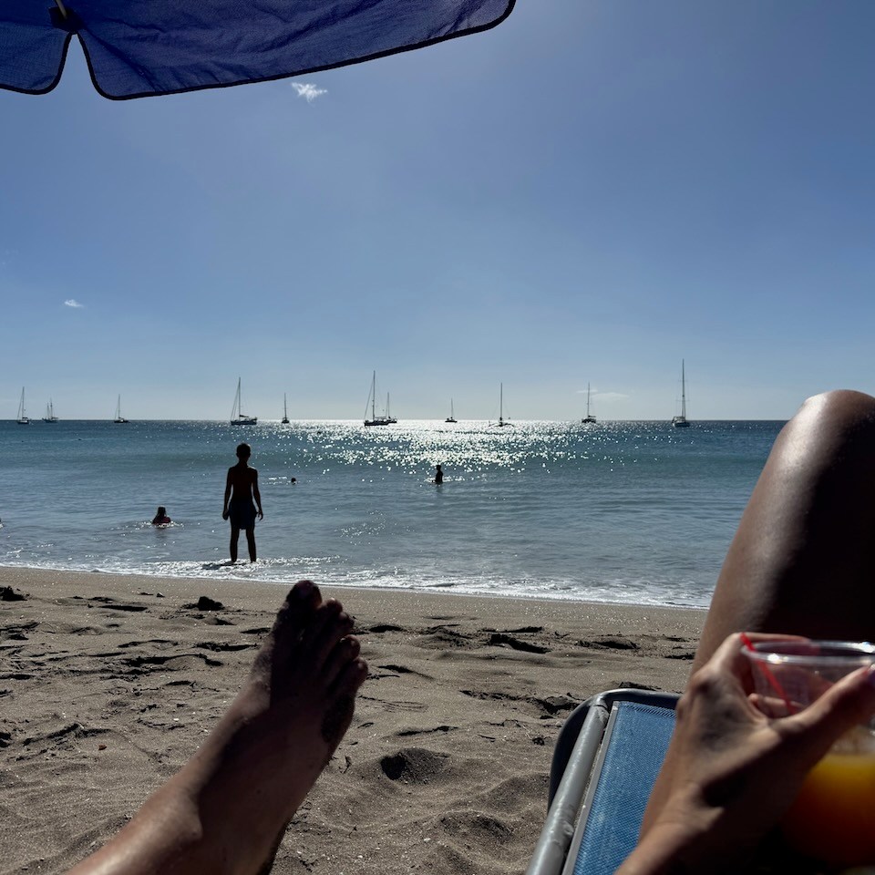 Finally, we relax! Pinney’s Beach looked like the nicest one on Nevis and with no seaweed or rocks. Though there were some rocky parts under the water, so we mostly got in and swam around.