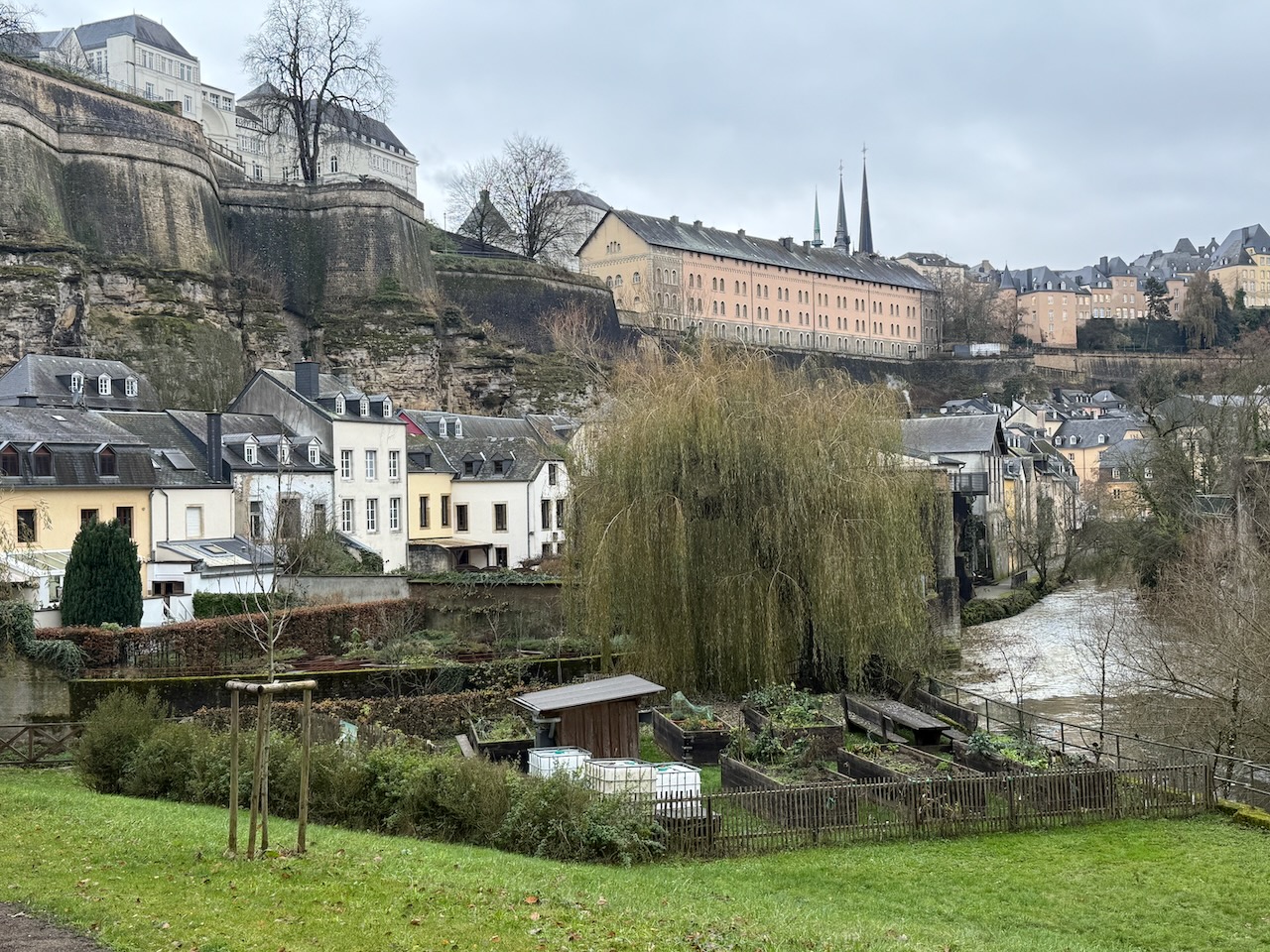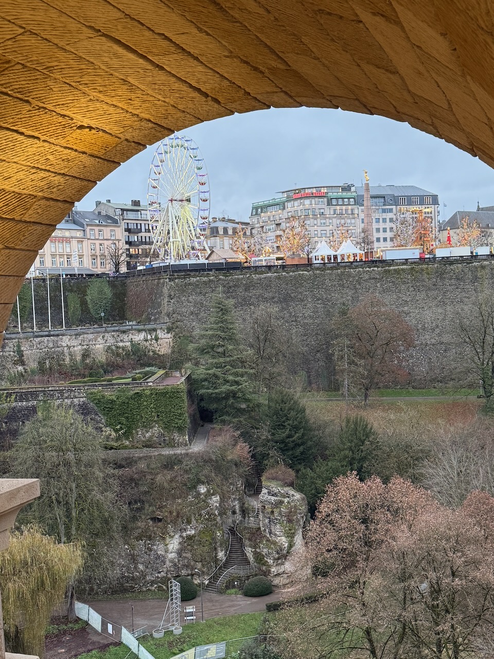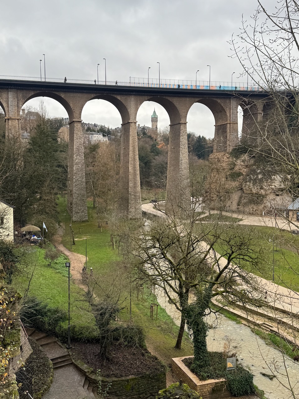 Often referred as “the most beautiful balcony in Europe” this is a path on the city wall overlooking the Alzette valley. The day was cloudy, but somehow it didn’t diminish how beautiful the views were of the city below.