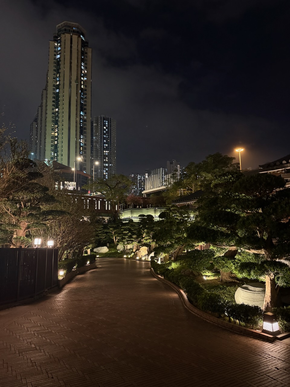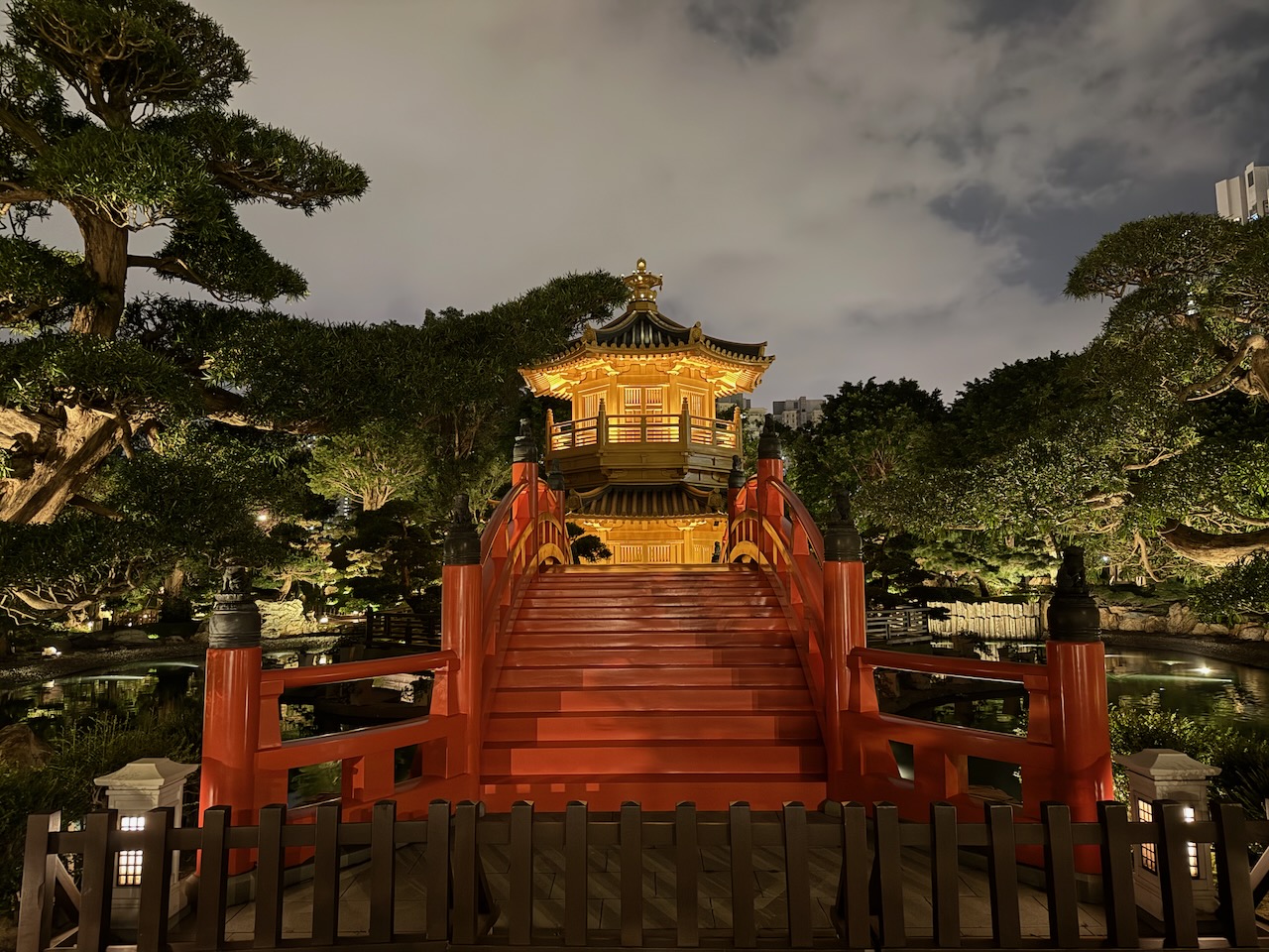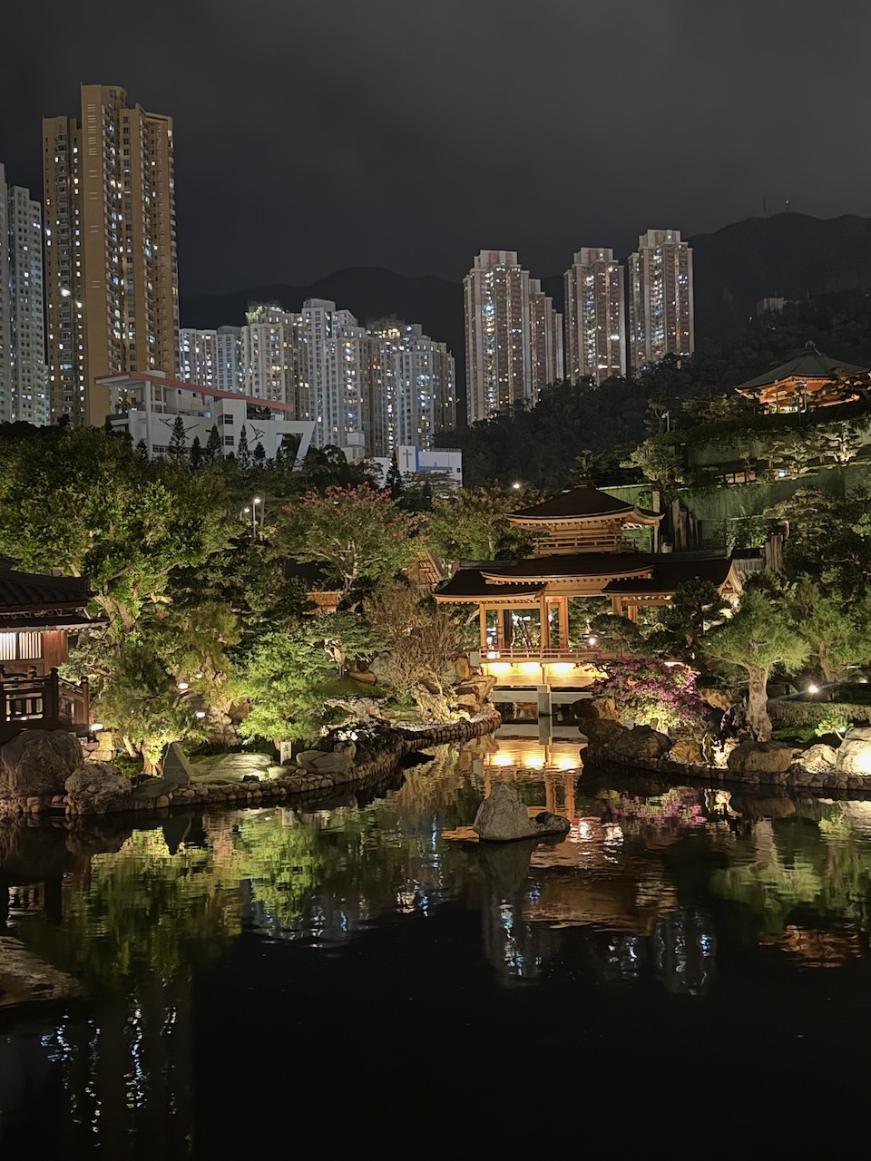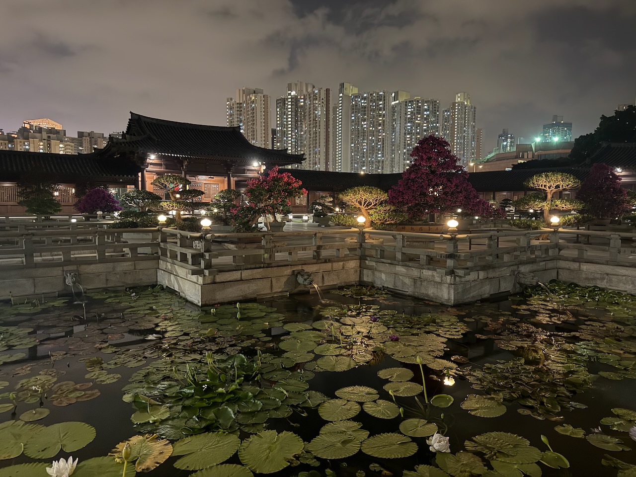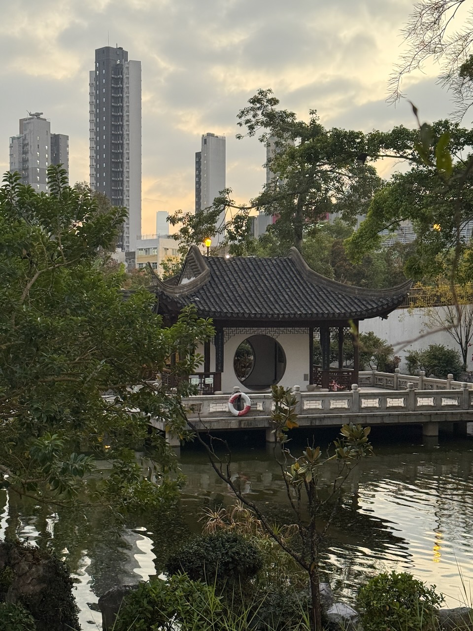 On our last evening in Hong Kong, we came to two of the most peaceful places in the middle of the city. Chi Lin Nunnery is a large Buddhist temple complex with a beautiful garden. Temples were closed when we came, but the garden was still open, and it was just the two of us wandering around.