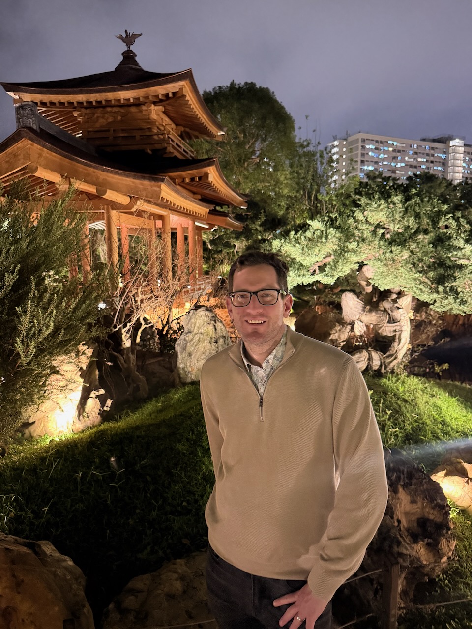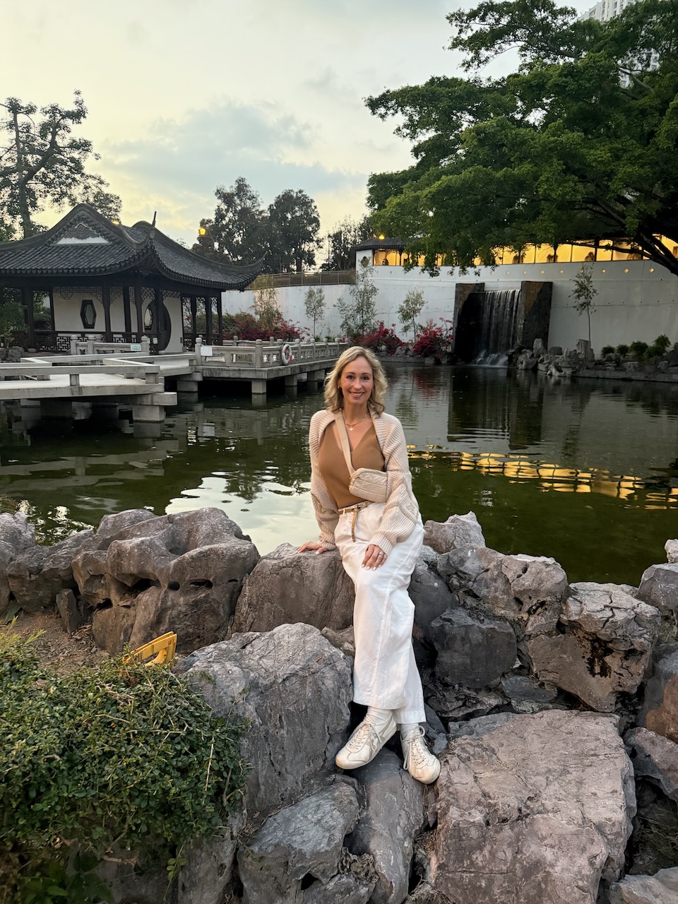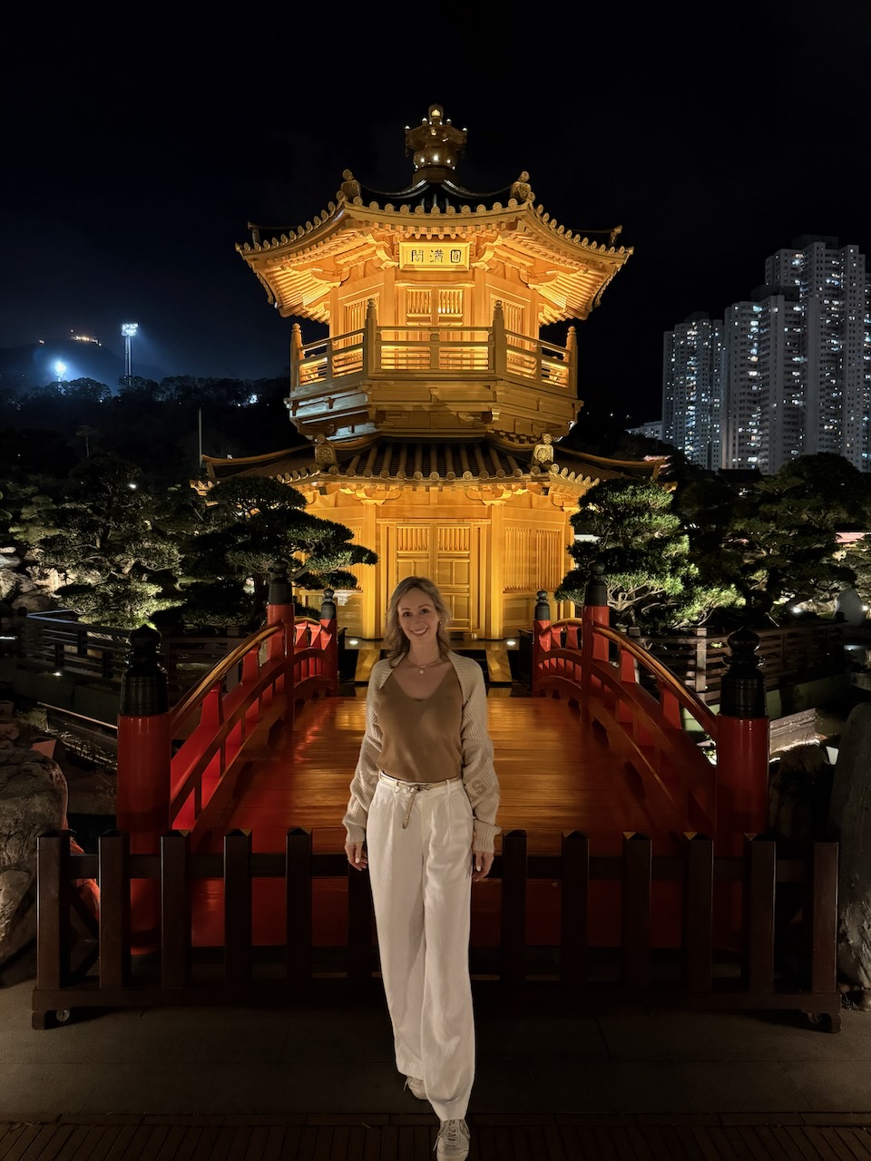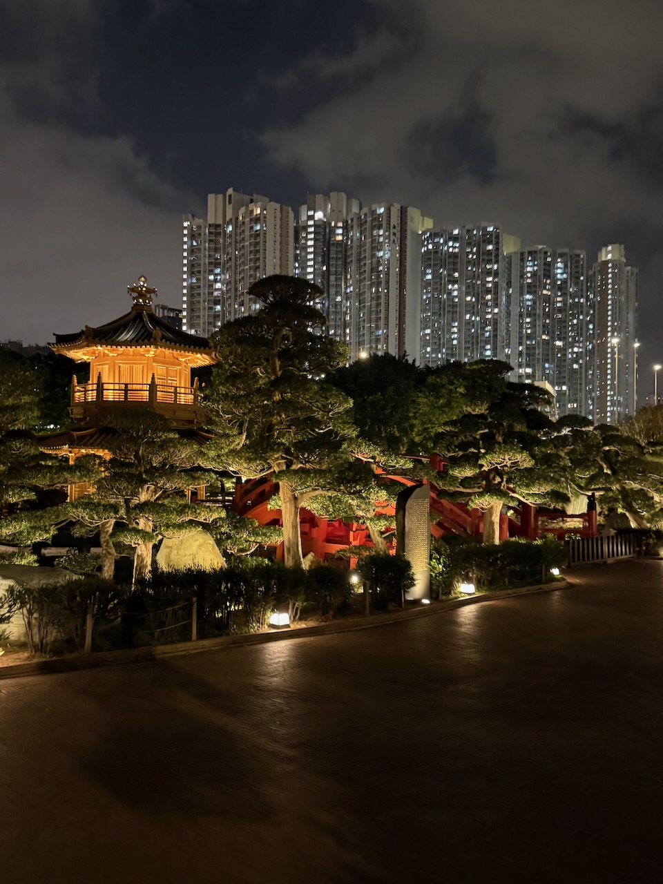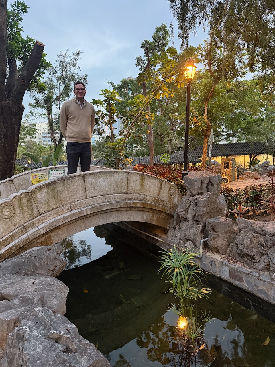 On our last evening in Hong Kong, we came to two of the most peaceful places in the middle of the city. Chi Lin Nunnery is a large Buddhist temple complex with a beautiful garden. Temples were closed when we came, but the garden was still open, and it was just the two of us wandering around.