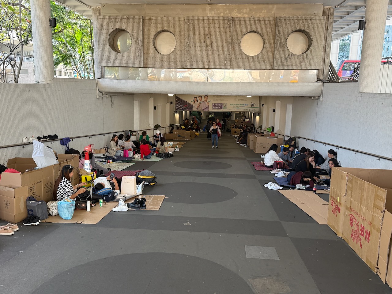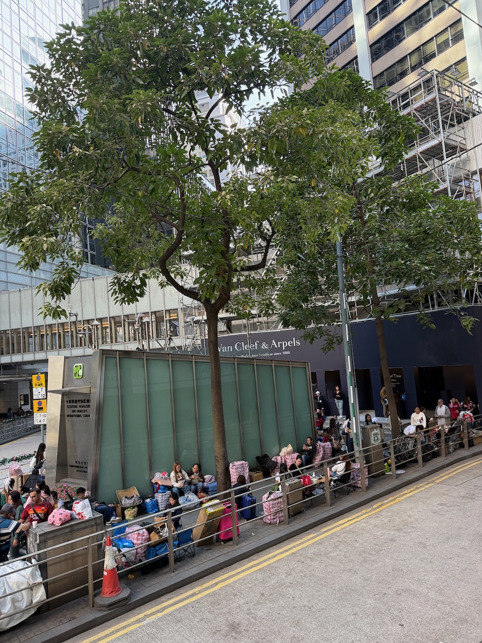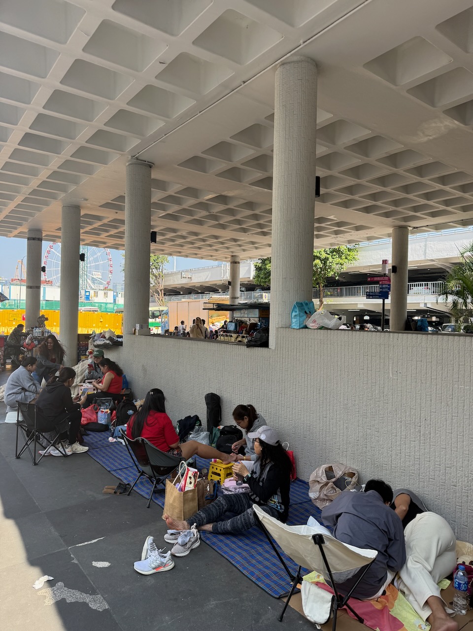 Another interesting observation: on a Sunday, we saw A LOT of people sitting on the ground, having food, painting nails, chilling, and many of them had cardboard box separations. If you didn’t know, you’d think they are homeless. But it’s 100% not the case. They are mostly Filipinos who work in Hong Kong (a lot of them as live-in help), and they all get a day off on Sunday. Because they don’t have much space to hangout together (presumably they only have a room at the host family’s house), they get together and hangout on the street!
