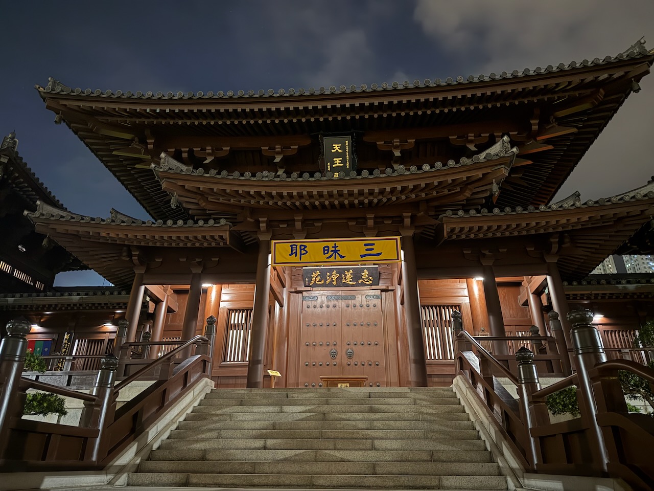 The temple is constructed entirely out of cypress wood, without using any nails, and it is currently one of the world’s largest hand-made wooden buildings.